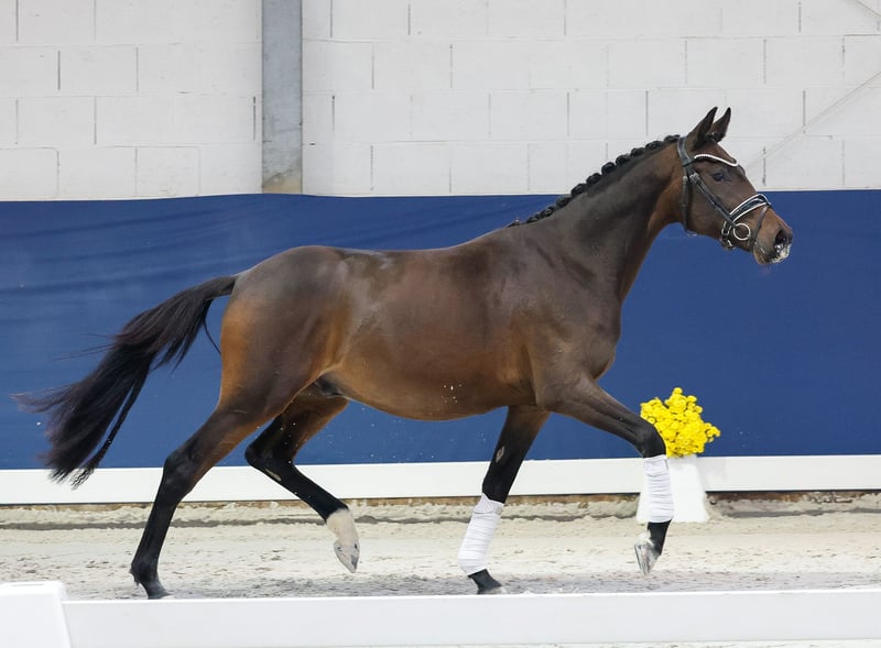 In unserer Kollektion stehen streng selektierte Youngster f�r alle Anspr�che: Ausbildungs-, Zucht- und Kinderponys Hier gelangen Sie zur Gesamtkollektion: https://ponyforum.auction Der zweijährige Wallach Wischhoffs Choclait Chip steht noch in der körperlichen Entwicklung, aber man kann schon klar seine hervorragenden Reitponypoints erkennen. Er ist ein nobler Youngster in dunkler Jacke, der sich schon sehr ausbalanciert und mit hervorragendem Grundschwung zu bewegen weiß. Sein Vater FS Clarimo gewann die Silbermedaille beim Bundeschampionat und ist in der FEI-Klasse erfolgreich, die Mutter Wischhoffs Easy Girl brachte bereits den Landeschampion Wischhoffs Casanova, der auch schon turniererfolgreich in Dressurprüfungen der Klasse L ist.