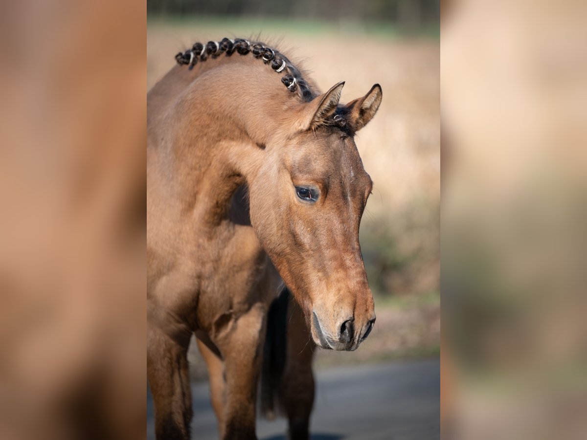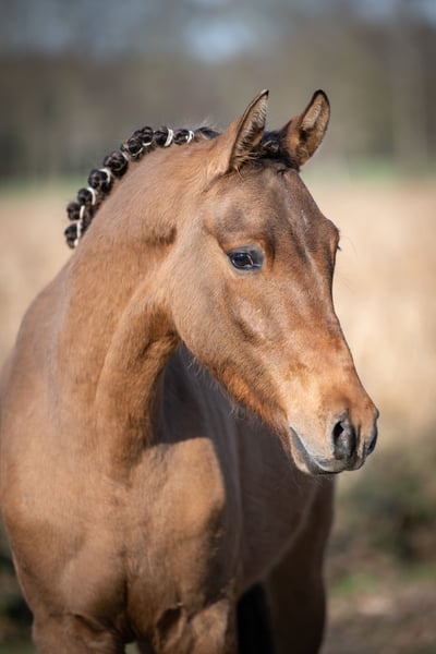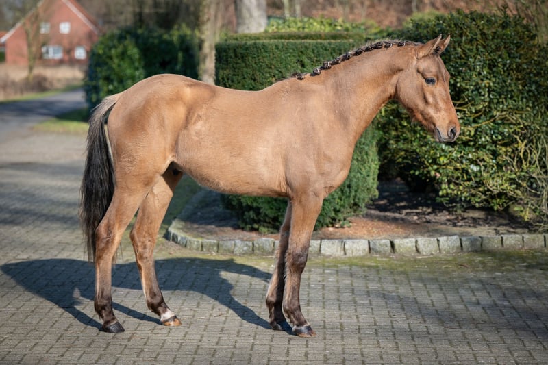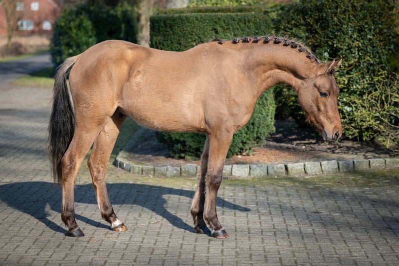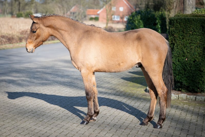 Promising 2-Year-Old Pony Gelding – Excellent Pedigree For sale is a very typy two-year-old pony gelding by Don Papa out of Pr.St.Bellevue Sk by Cooper County WE x Dance Star AT. The young colt impressed already as a foal and was awarded a premium accordingly. He exhibits three good to very good basic gaits – especially notable are his expansive walk, a lively trot, and a well-animated, uphill canter. The gelding has been raised appropriately for his age, including daily turnout on the pasture during winter, and is handled daily on the halter. He is well-behaved, friendly, and uncomplicated in handling. He is familiar with basic stable routines and behaves exemplary. Due to his quality, temperament, and friendly nature, he is well-suited for future sport use as well as as a children's pony in the making.