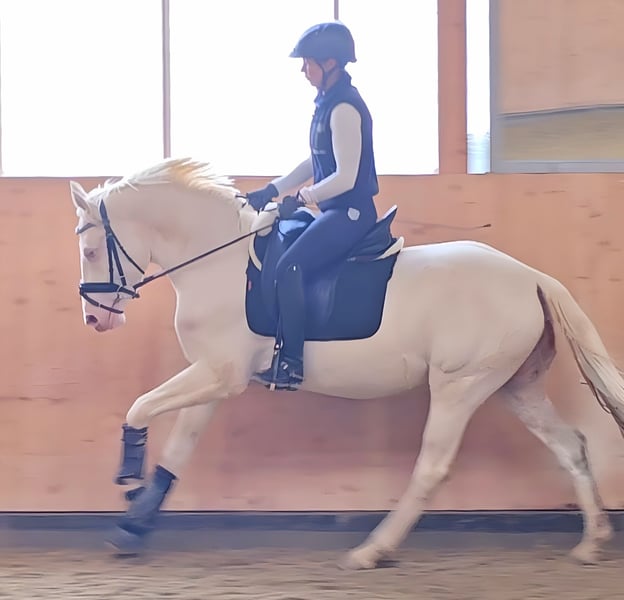 Bildhübscher Cremello Wallach, macht einen super Sprung. Sehr brav beim reiten, nicht glotzig und sehr abgeklärt, bleibt im Maß ! Excellenter Röntgen Tüv o.B. ( inklusive Rücken) Klinisch o. B. Nur Tel. oder WhatsApp bitte