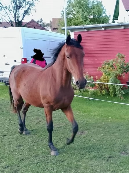 German Riding Pony gelding – Perfect for ambitious riders, show jumpers, dressage riders, and leisure riders. This charming bay gelding was born in 2023 and impresses with his friendly nature and versatility. With an estimated height of 152 cm, he is ideal for riders seeking a reliable and eager-to-learn partner. He is shoe-safe and easy to load. Thanks to his excellent pedigree and well-maintained appearance, he is a true eye-catcher. He was the Champion Foal in 2023. His sire, Cosmo Royale, was a double Bundeschampion. His dam’s sire is Mr. Tarek. Please contact me for further information or if you are interested. Viewing by appointment – see for yourself what a wonderful horse he is!