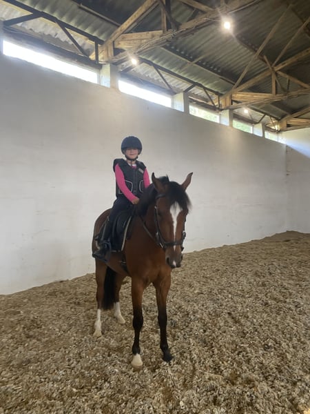 Dieser charmante und freundliche Wallach, der dem Menschen sehr zugewandt ist, sucht seine für immer Familie. Er wurde bei uns schonend und spielerisch angeritten und zeigte sich von Tag 1 an, sehr lieb und abgeklärt, er hat noch nie einen falschen Schritt gemacht und ist bei allem Neuem immer mit voller Begeisterung dabei. Dabei sehr unerschrocken und für sein Alter sehr sicher und entspannt. Er zeigt sich Straßenverkehrssicher LKW und Riesen Trecker ect bringen ihn nicht aus der Ruhe, und er kann schon von einer 9 jährigen kleinen Reiterin in allen Gangarten selbstständig geritten werden. Ein rundum tolles Pony. War bisher nie krank. Eine AKU liegt nicht vor, kann aber gerne gemacht werden. Zudem ist 2 spännig angefahren worden und hat ein Freispringchampionat gewonnen. Auswärts reiten und Training meistert er mit Bravour und ist nicht glotzig. Er deckt sehr gut ab, Reiterin auf den Bildern ist 173 cm. Er ist Barhuf und wächst in gemischter Herde im Offenstall auf und steht 24/7 auf Gras mit dauerhaft Heu, das verträgt er sehr gut. Bei ernstem Interesse bitte anrufen 015118980354 er wird nur verkauft da ich auf Dauer einfach zu groß für ihn bin um ihn turniertechnisch reiten zu können und ich schon seinen Bruder in der Größe besitze. Wird nur in gute und liebevolle Hände abgegeben. Zubehör wie Sattel und Trense können ggf miterworben werden. Da wir die Erfahrung gemacht haben, dass viele nur Videos sammeln und gar nicht schauen wie weit die Entfernung ist oder eigentlich ja ein Großpferd suchen und die Anzeige nicht komplett lesen, werden keine Videos versendet. Wer echtes Interesse hat, schaut sich dieses Superpony in echt an. Das Pony ist noch am Anfang seiner Ausbildung aber hat definitiv Potential um ein schleifensammler zu werden. Alleine durch seine Coolness, wird er sicher auf jedem Turnierplatz glänzen. Aber wer mit 3 einen hochgestochenen unreel ausgebildeten Strampler sucht, der ist hier fehl am Platz. Seine Ausbildung basiert auf ein gesunderhaltenes Reiten, wo Durchlässigkeit und feine Anlehnung und sicheres von A nach B kommen für Kinder und Erwachsene wichtiger ist, als die Beine hübsch zu schmeißen. Um Reittourismus zu vermeiden, werden 35 eur fürs zeigen, vorreiten und Probereiten verlangt.