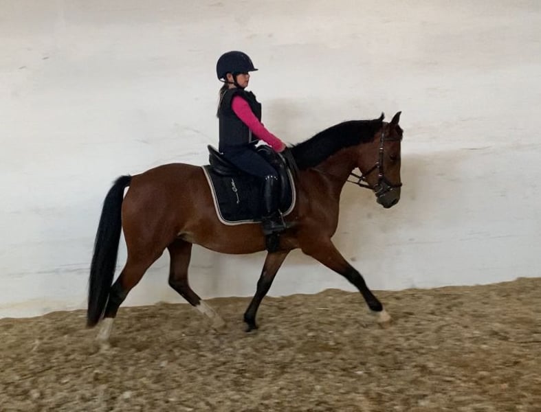 This charming and friendly gelding, who is very attentive to humans, is searching for his forever family. He was gently and playfully backed by us and has been very sweet and calm from day one. He has never taken a wrong step and approaches all new experiences with full enthusiasm. He is very brave and, for his age, confident and relaxed. He is traffic-safe; trucks and large tractors do not disturb him, and he can be ridden independently in all gaits by a 9-year-old girl. An all-around wonderful pony. He has never been ill. A health check (AKU) is not available but can be arranged if desired. Additionally, he has been driven in a pair and has won a free jumping championship. He handles competitions and training with flying colors and is not spooky. He is well-suited for breeding; the rider in the photos is 173 cm tall. He is barefoot and grows in a mixed herd in an open stall, living on grass 24/7 with constant hay, which he tolerates very well. For serious inquiries, please call 015118980354. He is only being sold because I am simply too tall for him to compete in tournaments long-term, and I already have his full-sized brother. He will only be placed in caring and loving hands. Equipment such as saddle and bridle can possibly be purchased together. Based on past experience, we do not send videos, as many only collect footage without checking the distance or realizing they are looking for a large horse and do not read the full ad. Genuine interest is best served by viewing this wonderful pony in person. The pony is still at the beginning of his training but definitely has the potential to become a ribbon collector. His calm demeanor will surely make him shine at any competition. However, if you are looking for a highly trained, show-quality dressage pony at age 3, this is not the right place. His training focuses on healthy riding, emphasizing suppleness, fine contact, and safe, relaxed movement from A to B—more important for children and adults than fancy leg movements. To avoid riding tourism, a fee of 35 euros is charged for show, lunging, and trial riding.
