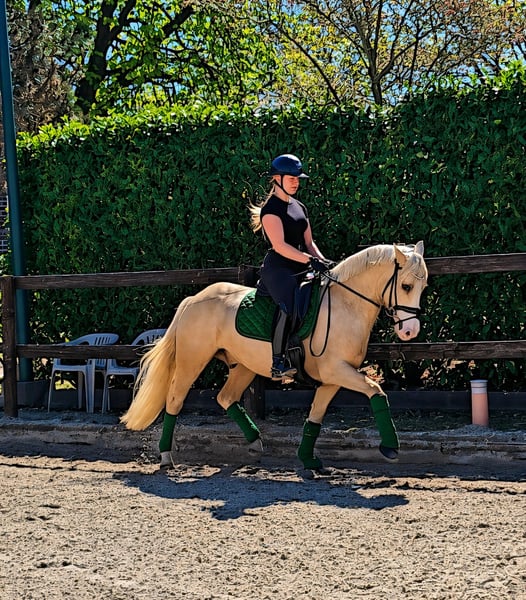 VIDEO https://youtube.com/shorts/GTvLZ7j_jy4?is=bKM8P9EqQ6KBP_Xa Dieser absolut tolle Kerl abstammen von Diamond Touch NRW sucht ein absolutes Traum Zuhause. Solide in Ruhe angeritten, hat er niemals auch nur eine falschen Tritt gemacht. Ob im fremden Gelände, in der Halle, auf dem Springplatz oder bei seinem ersten Auswärtstraining mit toller Osterdekorstion, stellt er hier seinen Traum Charakter unter Beweis. Er lässt sich brav auch mit Pad reiten und ist von Anfang an auch von kleineren Kindern super zu handeln gewesen. Inzwischen auch von 7 jährigen Mädchen begleitet geritten und gesprungen und lässt sich auch auswärts von 7 j Kind verladen. . Hier ist er mit und ohne Sattel einfach ein Schatz! Er bleibt zum Kuscheln mit den Kids in der Box entspannt liegen, ist aber unter dem Sattel fein genug um sein Potential auch im FEI Sport entfalten zu können. Er macht brav einen kleinen Sprung und wir erwarten, dass auf den in Kürze geplanten Turnieren genau so einen Topjob macht wie daheim. Er deckt super ab ( Reiterin auf den Bildern 1,68) und ist leicht in der Hand und easy an den Zügel zu reiten. Der Traumkerl zeigt 3 sehr gute Grundgangarten mit FEI Potential. Er ist super artig beim Schmied -selbst beim ersten Beschlag und war hier entspannt zu scheren. Gute Röntgenbilder inkl Rücken liegen bereits vor. Ein Traum Pony für eine Mutter/ Tochter- oder Geschwister-Kombination bei der ein Reiter dieses Traumpony weiter ausbilden kann. Videos und weitere Infos unter : 0177 275 9886 ALLE ANGABEN OHNE GEWÄHR, DA SIE AUF SUBJEKTIVEN EINDRÜCKEN DES ANBIETERS UND/ ODER VERKÄUFERS BERUHEN.