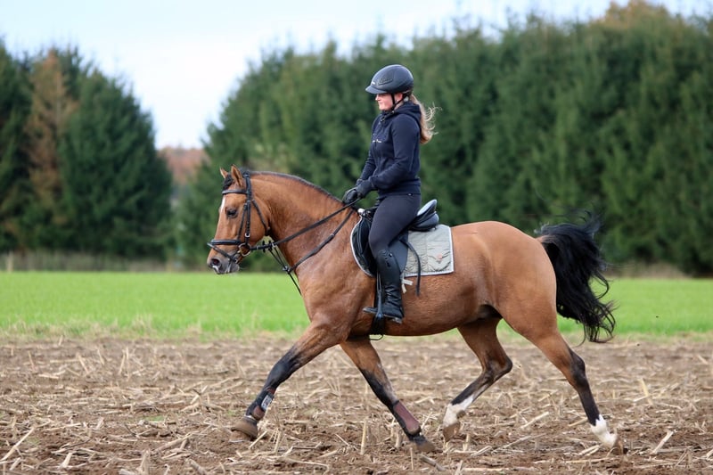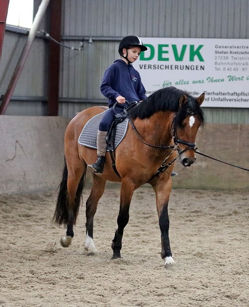 Te koop staat een prachtige dressuurpony-ruin (met Duitse afstamming van vaderskant), geboren in 2022. De pony is een elegante valk met een stokmaat van 148 cm. Het is ideaal voor dressuur en springen, toont veel talent en heeft een aangenaam karakter. De pony is goed opgeleid, vriendelijk in de omgang en heeft een veelbelovende toekomst in de sport of eenvoudigweg als recreatiepartner voor het hele gezin. Lucky-Luke is krachtig gebouwd met bijzonder veel fundament. Uitstekende basisgangen, toont talent voor springen, werkwillig en veelzijdig inzetbaar. Röntgenologisch onderzocht, maar zonder bevindingen. Een klinisch aankooponderzoek wordt binnenkort voor de overdracht uitgevoerd. Bij interesse of voor verdere vragen staan wij graag voor u klaar. Alleen serieuze aanvragen. Bezichtigingen mogelijk op zaterdagochtend na telefonische afspraak. Video's zijn beschikbaar. We vragen om begrip dat video's alleen na telefonische contact via WhatsApp worden verstuurd.