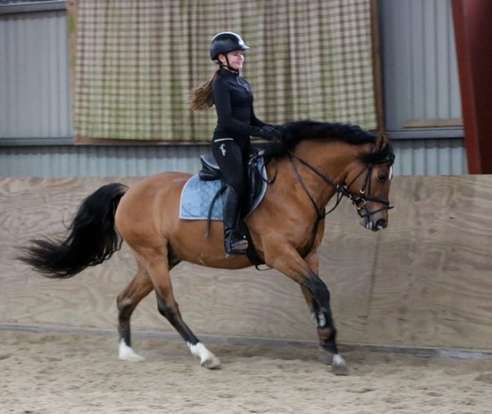 For sale is a beautiful German-bred riding pony gelding, born in 2022. The pony is an elegant liver chestnut with a height of 148 cm. It is ideally suited for dressage and show jumping, demonstrating a lot of talent and a pleasant character. The pony is well-trained, friendly to handle, and has a promising future in sport or simply as a leisure partner for the whole family. Lucky Luke has a strong build with excellent fundamentals. He has great basic gaits, shows talent over fences, is eager to work, and is versatile in use. Radiological examination has been carried out with no findings. A clinical purchase examination will be performed shortly before handover. If you are interested or have further questions, please feel free to contact us. Serious inquiries only. Viewings are possible on Saturday morning by prior telephone arrangement. Videos are available. Please understand that videos will only be sent after initial contact via WhatsApp.