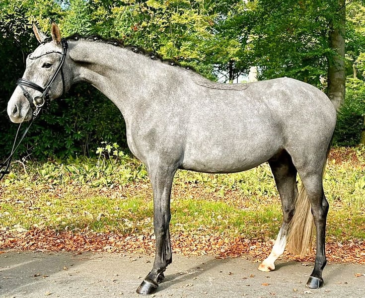 Cavalino – Youngster with Top Pedigree & Charisma to Fall in Love With Our charming German Riding Pony gelding (by Calimero x Bazar), born on May 31, 2022, is now looking for his forever person. Cavalino combines outstanding lineage, work ethic, and a wonderful character – a versatile young horse with heart and a bright future! As a foal, Cavalino already displayed his special presence: He was rated as outstanding at the foal show, praised for his type, movement, and expression. Additionally, he was brave in water as a foal – he went swimming (see photos!) and demonstrated his nerve and curiosity. Today, Cavalino is solidly trained in dressage and already shows promising jumps under saddle. He is talented, brave, and always motivated, whether in the arena, indoor riding hall, or out in the field. Cavalino works with joy, remains clear-headed, honest, and gentle in his manner. Earlier this year, he won a young rider competition together with a 12-year-old girl – another sign of his calm, people-oriented, and trusting nature. Cavalino is a true all-rounder: whether dressage, jumping, leisure riding, competitions, or trail riding – he performs excellently everywhere. We see him as an ideal partner for both adults and children, perhaps even for a mother and child duo. His size comfortably suits riders up to approximately 170 cm. For those who enjoy training a youngster and growing together, Cavalino offers an honest, motivated partner with great potential. He is currently in training but can be visited and test ridden at any time. Price: €17,000 negotiable - Price is secondary! (We are happy to negotiate for the right home!) For further questions, we look forward to your messages! Best regards.