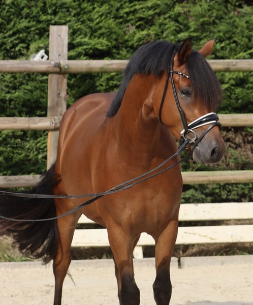 Steverheides Nikita est un hongre de 3 ans avec une allure sportive de type étalon et une taille XL recherchée d'environ 1,53 m. Il offre ainsi des conditions idéales pour de petits adultes ou des jeunes ambitieux à la recherche d'un partenaire performant et remarquable pour le dressage. Avec trois très bonnes allures de base, une conformation correcte et puissante, et une ligne claire, Nikita impressionne tant en mouvement qu'en extérieur. Sa lignée ne laisse rien à désirer : FS Numero Uno x Dein Sunnyboy x Werwolf x Nibelungenheld I – un fond génétique conçu pour le succès sportif. Deux de ses frères ont déjà réussi jusqu'en classe FEI ainsi qu'en classe M. La lignée maternelle est également éprouvée en performance : sa demi-sœur a obtenu un excellent test de performance des juments, a été nommée jument d'État et a été 1ère réserve des poneys de sport orientés saut en 2023 en Westphalie. Une lignée solide et éprouvée avec des performances avérées. Dans le quotidien, Nikita se montre sensible et un peu réservé. Il lui faut un peu de temps pour établir sa confiance, mais il se montre ensuite attentif, désireux d'apprendre et coopératif avec les personnes familières. Il maîtrise de nouvelles tâches de manière fiable et avec un esprit clair – un jeune hongre avec beaucoup de potentiel pour les cavaliers qui apprécient et souhaitent développer son caractère délicat. Des radiographies actuelles (18 clichés, y compris du dos) datant de janvier 2025 sont disponibles et peuvent être consultées en cas d'intérêt sérieux. Nikita est proposé dans le cadre de mon projet de maître – j'attache une grande importance à un conseil honnête et à un contact personnel. Je me ferai un plaisir de prendre le temps pour une conversation détaillée ainsi qu'une présentation individuelle sur place. En cas d'intérêt sérieux, je me réjouis de recevoir votre message ou votre appel.