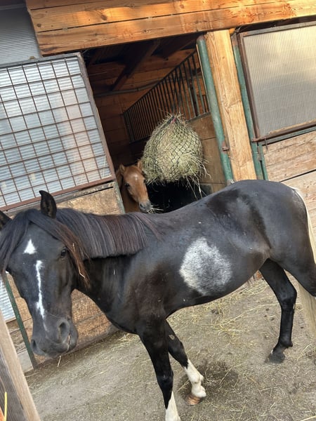 Annuncio di vendita: Pony tedesco da passeggio, castrone – Compagno versatile per il tempo libero In vendita un affascinante pony da passeggio tedesco, noto per la sua natura amichevole nei confronti dei bambini. Il castrone è nato nel 2021 e si presenta come un bel castrone pezzato con un aspetto molto gradevole. Con un'altezza al garrese di 125 cm, è perfetto per giovani cavalieri o principianti alla ricerca di un partner affidabile per il tempo libero. Il pony è stato già montato e, dal precedente proprietario, è stato anche messo al carretto. È docile nel maneggio, abituato alla ferratura e al carico sui trailer. È abituato a lavorare con bambini e ha principalmente svolto lezioni per principianti. È ancora in fase di formazione, e può muoversi a passo, trotto e galoppo sia in arena che al longe. Con cavalieri meno esperti, può essere un po’ vivace, ma mai scontroso. È stato anche saltato, anche se probabilmente necessita ancora di supporto da parte di un cavaliere esperto. In campagna si comporta bene e senza problemi. Questo pony da passeggio tedesco è il compagno ideale per chi cerca un partner affidabile, amichevole e affascinante per il tempo libero. Se siete interessati, saremo lieti di ricevere il vostro contatto.