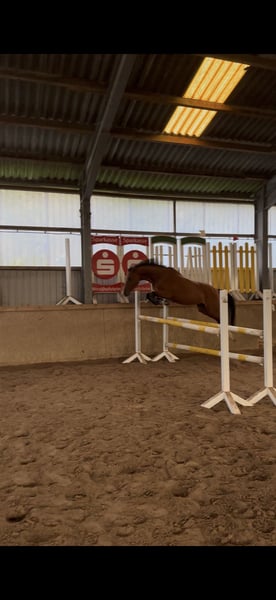 For sale is a 4-year-old pony gelding, who has been gently and age-appropriately trained. Cosmo Royal x Nemax approximately 1.43m tall The gelding already has some competition experience - Dressage horse A - Lead rein - Caprilli He impresses with correct, easy-to-ride basic gaits and particularly good walk and strong hindquarters. He also confidently completes small courses with children. In handling, he is fearless, knows children, traffic, various riding arenas, and trailer loading without any issues. A current, very good vet check (July 2025) is available and can be viewed upon request. The sale is due to the fact that there is no suitable rider available for him in the long term. Therefore, we wish for him to be in supportive hands where his potential can be further developed.