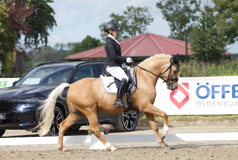 Bestplatz gesucht! Schweren Herzens habe ich mich dazu entschieden meinen 4,5 jährigen Deutschen Reitpony Wallach Goldhase zu verkaufen. „Hasi“ ist seit seiner Geburt in meinem Besitz. Er wurde Dreijährig kurz angeritten und ging vierjährig seine ersten Turniere. Er ist Reitpferde gegen Großpferde platziert und ging ebenfalls mit 12 jährigem Kind bereits eine WBO Prüfung. Ich bin mit ihm regelmäßig im Wald und am Strand, egal ob alleine oder mit anderen Pferden. Er kennt es ohne Sattel geritten zu werden und kann problemlos von Kindern (auch ausgebunden) geritten werden. Hasi ist ein absolutes Herzenspony, welches Kinderherzen höher schlagen lässt. Aufgrund seiner guten GGA ist er auch für Erwachsene Ponyreiter geeignet. Hasi geht wirklich nur wenn alles passt. Es gilt Platz vor Preis und er wird ausschließlich mit Vorkaufsrecht abgegeben. Seine Mutter sowie weitere Halbgeschwister von Hasi können ebenfalls besichtigt werden.