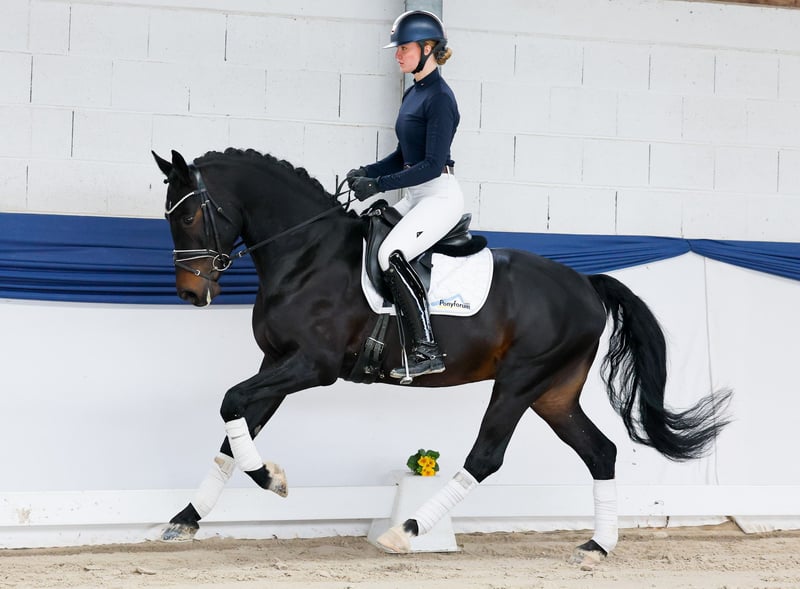 Our collection features carefully selected riding ponies suitable for all disciplines: training, breeding, and children’s ponies. You can view the entire collection here: https://ponyforum.auction Achievements: 2 starts in RPF, 1 win, 1 second place An impressive presence enters the arena with the five-year-old gelding My Next Universe. Standing at 1.53 meters, "Mogli" has outgrown the traditional pony size and now qualifies as a desirable XL pony. He is also well-suited for further dressage training under an adult rider, backed by excellent references. Mogli is highly willing to work and possesses a healthy, well-regulated, and controllable sporting spirit. You can easily activate his "work mode" or simply enjoy relaxed riding and downtime with him. His high basic quality was already confirmed with a positive conformation assessment. He has competed twice in riding horse classes, winning once and placing second once. This level of quality is no coincidence. Both his sire and dam are dressage successful riding ponies in class S — a truly rare achievement in German riding pony breeding! An outstanding dressage prospect pony, highly recommended for further training in the higher classes.
