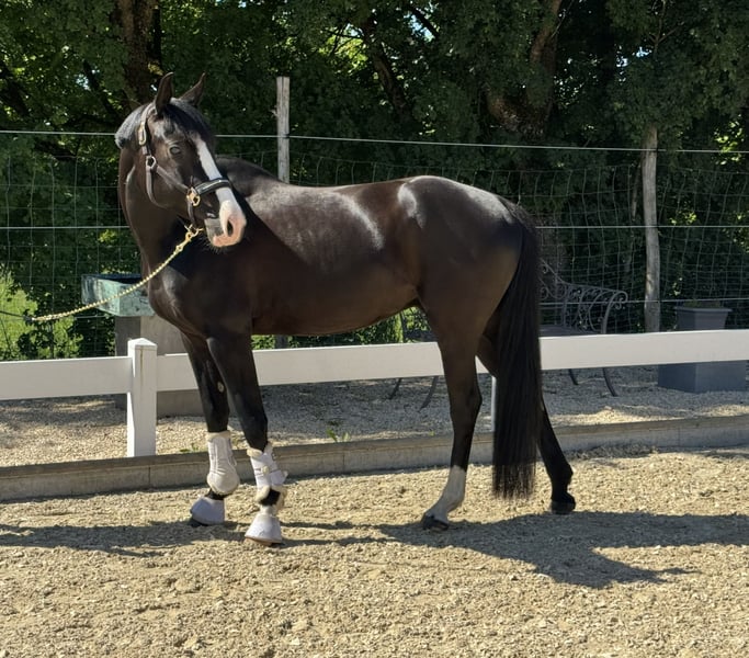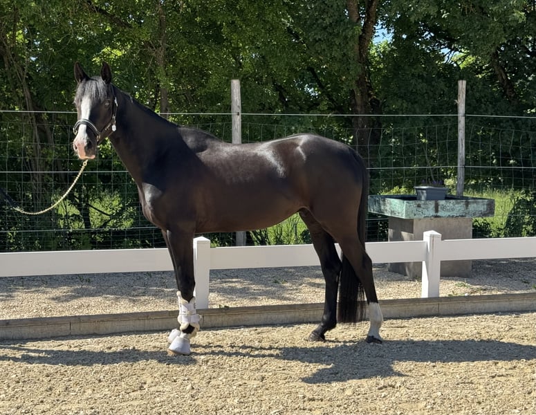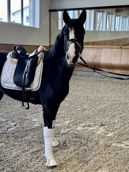 Future Star with Charm – Dynamic DRP Gelding in Glossy Black ⭐ For sale is an absolute eye-catcher: German Riding Pony gelding, 4 years old, approximately 155 cm tall, black with a stunning presence. This young dressage prospect not only impresses with his outstanding movement quality but also with a golden character: – Sweet in handling, very cuddly and people-oriented, he is always friendly and attentive. - Front shod He was on the stallion pasture until the end of the year and has now been started under saddle. He already shows great potential under saddle, with much balance and relaxation. With further training, he has everything that makes a successful dressage pony – an investment in the future! Ideal for: • ambitious youth or small adults • Dressage, possibly also suitable for smaller jumping competitions later • Riders with an eye for quality and fine riding Note: As training progresses, the price will be adjusted according to potential. Location: 72584 Contact & videos available upon request Price upon request