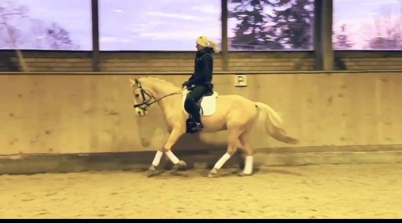 Zum Verkauf steht hier ein sehr gehfreudiger und leistungsbereiter Palomino Wallach. Goldie begeistert jeden Tag aufs Neue mit seinem Arbeitseifer. Er befindet sich derzeit in Profiberitt und kann dort jederzeit besichtigt werden. Er ist 5 Jahre alt, A-sicher und beherrscht bereits erste L-Lektionen. Im Gelände ist er brav und liebt die Abwechslung. Auch kleine Sprünge meistert er wurde hier allerdings nicht weiter gefördert. FEI Potenzial Er ist sehr menschenbezogen, liebt es zu kuscheln und genießt die Nähe seiner Bezugsperson. Im Umgang zeigt er sich freundlich und sozial, ist mit anderen Pferden sehr verträglich. Neben dem Reiten wurde mit ihm auch Boden- und Handarbeit gemacht. Er kann von Kindern oder Jugendlichen geritten werden, sollte jedoch altersbedingt weiterhin regelmäßig von einem Erwachsenen mitgeritten werden. Er zeigt sich neugierig unterschiedliche Untergründe, Planen, ein großer Ball oder wenn man hinten runter rutscht all das bringt ihn nicht aus der Ruhe. Außerdem liebt er Wasser und geht begeistert durch Pfützen. Schmied, Verladen und Tierarzt (zum impfen) sind absolut kein Problem. Er ist mit 1,47m eingemessen. Schöner Platz vor Preis