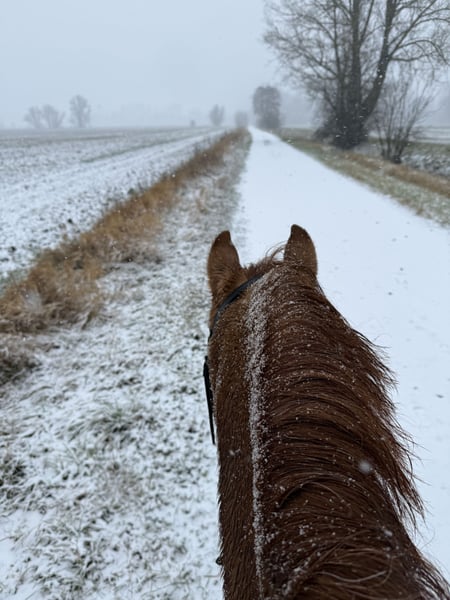 Si tout va bien, je serais prêt à me séparer de mon cher poney de selle, pour des raisons de temps. Il est né en 2019 et mesure environ 1,40 m au garrot. Je l'ai acheté à l'âge de 3 ans en tant que hongre auprès d'un éleveur, l'ai débourré moi-même et l'ai formé. Il est gentil en main, monte en toute sécurité seul ou en groupe en extérieur, et montre des ambitions en dressage sur le manège, que je n'ai pas pu développer davantage par manque de temps. Les enfants peuvent le mener, le brosser et le câliner sans problème, et il se montre calme chez le maréchal-ferrant et le vétérinaire. Actuellement, il porte des fers à l'avant, mais ce n'est pas une nécessité. Il est régulièrement vermifugé et ses dents sont contrôlées périodiquement. Jusqu’à présent, il n’a montré aucune mauvaise habitude, mais il a besoin de mains expérimentées pour assurer sa sécurité. En été, il pâture sur la pâture, et en hiver, il est au box avec une sortie quotidienne au pré, ce que je souhaite également pour lui à l'avenir. Aucune blessure ou problème de santé n’est connu à ce jour. Il est compatible avec le troupeau, mais a tendance à sauter sur les juments.