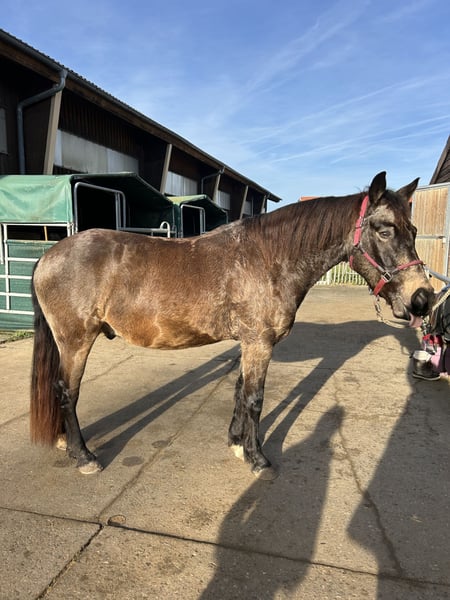 Zum Verkauf steht Barajo, ein 2019 geborener Reitpony-Mixwallach mit tollem Charakter und viel Freude an der Arbeit. Barajo stammt väterlicherseits von einem Deutschen Reitpony, die Mutter ist ein Mix aus Deutschem Reitpony und Haflinger. Er ist braunfalben, ca. 1,45 m groß und besticht durch sein harmonisches Erscheinungsbild. Charakterlich ist Barajo nervenstark, arbeitsfreudig und zuverlässig. Er zeigt sich stets motiviert, lernwillig und brav im täglichen Umgang. Zudem ist er schmiedefromm und unkompliziert im Stallalltag. Ausbildungsstand: • longiert • geritten in Schritt, Trab und Galopp • Seitengänge im Schritt (Schenkelweichen, Schulterherein, Konterschulterherein) • kennt Kinderreitstunden an der Longe Haltung: Barajo lebt aktuell tagsüber in einer Wallachherde und steht nachts in der Box. Er ist sehr verträglich, verspielt und nicht rangniedrig, sodass er sich gut in einer Herde behaupten kann. Eine Offenstallhaltung kann ich mir für ihn gut vorstellen. Eine gemischte Herde ist nicht geeignet, da er deutliches Interesse an Stuten zeigt. Wunschplatz: Ich wünsche mir für Barajo einen Jugendlichen oder leichten Erwachsenen, der gemeinsam mit ihm weiter lernen, wachsen und ihn altersgerecht fördern möchte. Er eignet sich ideal als Partner für den ambitionierten Freizeitbereich oder als Nachwuchspony mit weiterer Perspektive. Weitere Informationen, Fotos und Videos gerne auf Anfrage. Barajo wird nur in liebevolle und passende Hände abgegeben.