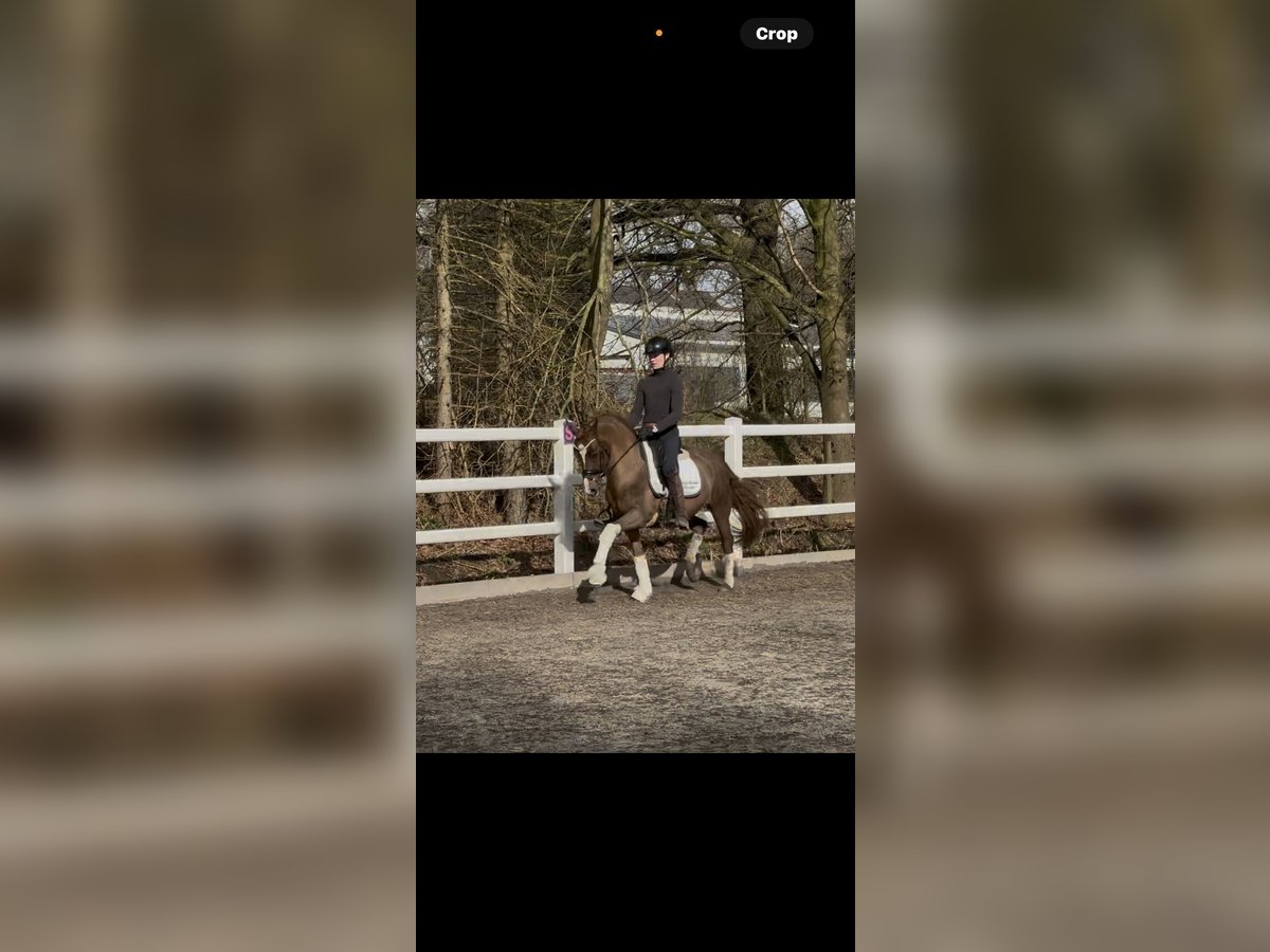 Guinness is a 7-year-old former licensed stallion, now a gelding, who leaves nothing to be desired! In his youth, he achieved high placings in riding and dressage competitions and qualified for the Federal Championship. Currently competing at a very good L** level and placed up to L, he is now ready to step into Pony FEI sport. Very well-behaved in handling, good TüV, and three excellent GGA make Guinness an absolute dream pony! Videos and further information gladly available via WhatsApp at 0160 6329297.