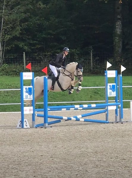 - Optische Erscheinung mit Traumfarbe: Fuchs-Isabelle Palomino - starkes Interieur: Absolut unerschrocken und kopfklar - Arbeitswillig, menschenbezogen und dem Reiter zugewandt - Drei überragende Grundgangarten - Vize-Meister bei den Schweizer -Dressurmeisterschaften 2025 - siegreich L-Dressur bis 71% - OKV Newcomers Meister Dressur, Vizemeister kombiniert mit Springen - -beherrscht die Pony FEI Lektionen - Riesiges Potenzial für die Zukunft - Auch im Springen und im Geländetraining überzeugend - in der Gruppe sozial verträglich