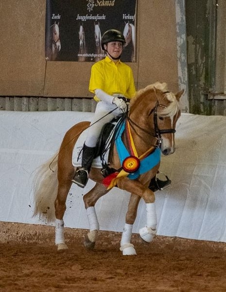 Elite- und Bundesprämienhengst Salvator SCH – Vielseitiger Edelbluthaflinger mit Top-Erfolgen in Sport & Zucht Zum Verkauf steht der außergewöhnliche Edelbluthaflingerhengst Salvator SCH, geboren am 26.05.2012, mit einem eleganten Stockmaß von 145 cm und einem auffälligen Fuchsfarbton. Mit einem Araberblutanteil von 5,273 % und PSSM1-Freiheit (n/n) verbindet er edle Abstammung mit bester Gesundheit. Züchterische Highlights: 2012: Siegerfohlen bei der regionalen Fohlenprämierung in Cottenbach 2012: Erfolgreiche Teilnahme am Süddeutschen Haflinger- und Edelbluthaflingerfohlenchampionat in München 2014: Süddeutscher Haflinger- und Edelbluthaflingerkörung in München – süddeutsch gekört 2016: Klassenreservesieger beim Zentralen Landwirtschaftsfest München 2016: Sieger Hengstleistungsprüfung Warendorf mit 8,36 2019: Bundesreservesieger Fahren und Verleihung der Bundesprämie Zucht bei der Bundeshengstschau München 2022: Verleihung des Titels „Elitehengst“ – erster Fränkisch gezogener Haflinger-/Edelbluthaflingerhengst mit diesem Titel 2023: Verleihung des Sportpräfix DSP aufgrund seiner herausragenden Eigenleistung Sportliche Erfolge: Deutscher Fahrponychampion der 6- und 7-jährigen Fahrponys Zahlreiche Siege und Platzierungen bis L**-Dressur (Kandare) Erfolge im Springen und in der Vielseitigkeit Charakter & Umgang: Salvator ist ein absolut braver, zuverlässiger Partner – sowohl im Umgang als auch unter dem Sattel. Er genießt es sehr, geputzt und betüttelt zu werden, zeigt sich dabei sehr liebevoll und menschenbezogen. Sein angenehmes Wesen macht ihn zu einem tollen Freizeit- und Sportpferd, mit dem man auch im Gelände entspannt die Seele baumeln lassen kann. Besonderer Hinweis: Salvator SCH wird ausschließlich in ein liebevolles 5-Sterne-Zuhause abgegeben, in dem der Spaß und die Freude im Umgang mit ihm im Vordergrund stehen – nicht der reine sportliche Ehrgeiz. Salvator SCH ist ein Hengst mit herausragendem Potenzial für Zucht und Sport, der sowohl durch seine Erfolge als auch durch seinen Charakter überzeugt. Nutzen Sie die Chance, einen Elitehengst mit vielseitigen Talenten und tollem Temperament in Ihr Team zu holen! Für weitere Informationen, Bilder oder Videos stehen wir Ihnen jederzeit gerne zur Verfügung.