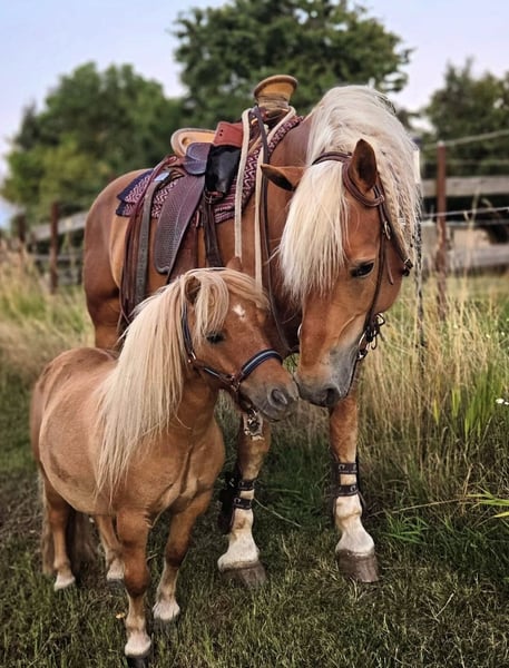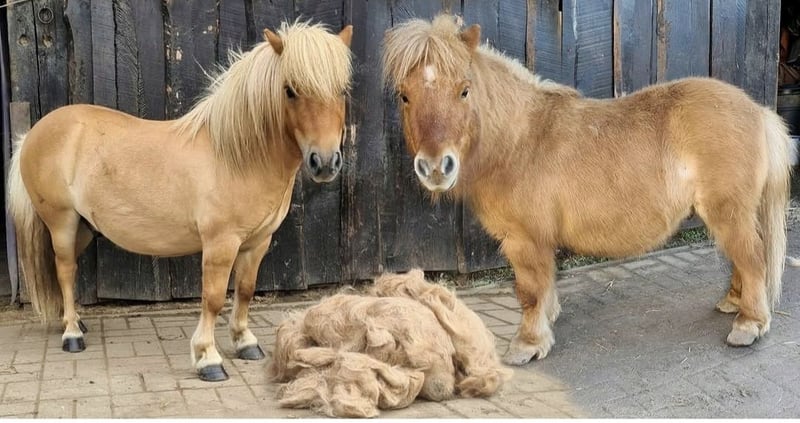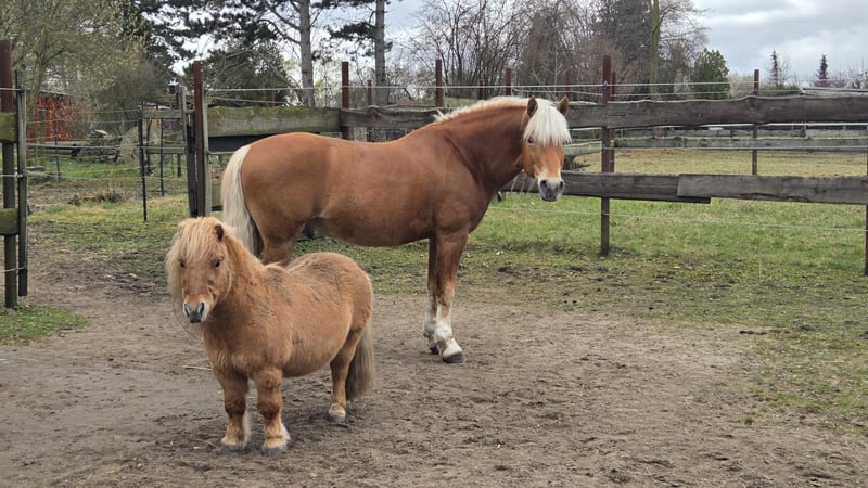 Uniek duo: Gekeurde Edelbluthaflinger-ruin en Mini-Shetty