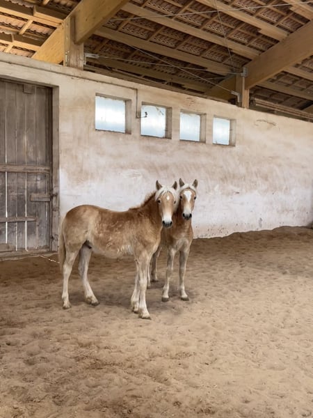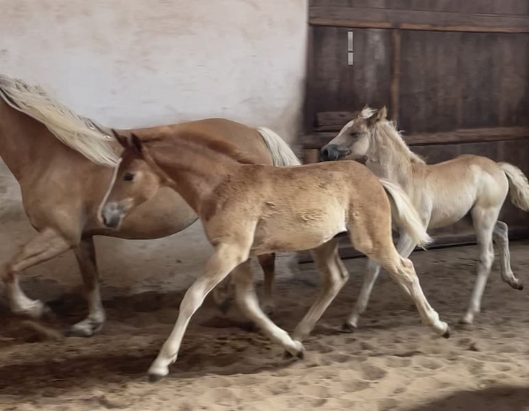 Diese drei Haflingerhengste, werden bald kastriert: 1. Bruno Mars, geb 4/25 Sohn des Bugatti x Sandro Boy. Er ist sehr typvoll und in seiner Sonderlackierung mit dem Rotstich, ein echter Hingucker. Sportlicher Typ und dabei total cool. Aus einer Stutenlinie, die immer hervorragende Leistungsprüfungen absolvierten und dabei total brave Kinderponys waren. Bugatti Kinder sind sehr wüchsig, also wird er wahrscheinlich auch über 150cm werden. 2. Samu M, geb. 4/25 Sehr chices, langbeiniger Hengst mit sehr viel Charme und einem lieben Charakter. Sehr verschmust und menschenbezogen, unerschrocken und cool. Bewegt sich sehr gut und wird aufgrund seines Charakters sicher ein toller Freizeitpartner. Abstammung ist Starino I x Sandro Boy. Schätzen sein Endmaß auf etwa 148cm. 3. Simsalabim M, 5/25 Starino I x Nobilis, geschätztes Endmaß 145cm Er hat viel Aufriss und jetzt schon einen ausgeprägten Hengsthals, wird sicher mal ein sehr ausdrucksvolles Pferdchen. Bewegt sich sehr sehr gut und ist von eher kompakter Statur. Die Vollschwester zu seiner Mutter ist an eine Familie verkauft worden und wird von den Kindern erfolgreich am Turnier geritten. Durch ihren super lieben Charakter, den alle aus dieser Linie aufweisen, ein ideales Freizeitpferd. Unsere Fohlen werden regelmäßig entwurmt, dem Schmied vorgestellt und beherrschen zum Absetzen das Fohlen ABC. Kann zur weiteren Aufzucht auch hierbleiben, aber nur als Wallach. Kastrationstermin ist der 27.4., danach werden sie jeweils für 3000,-€ verkauft oder gehen ab 9.5. auf die Sommerweide. Bei Fragen gerne unter 0177-8985761 melden.