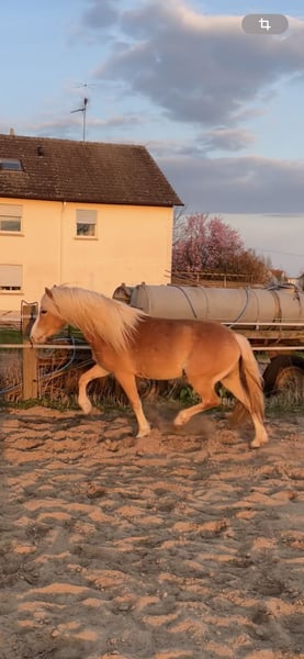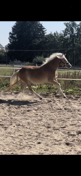 Ich verkaufe schweren Herzens meine 3 jährige Haflingerstute weil sie leider nicht groß genug für mich geworden ist. Sie ist das erste Fohlen aus meiner Melina, mit der ich bis Klasse M unterwegs gewesen bin. Maila ist eine sehr freundliche, menschenbezogene und energiegeladene Stute. Sie will immer alles richtig machen und kennt bereits Sattel, Trense und Longieren. Bisher habe ich sie nicht angeritten, falls gewünscht wäre es aber kein Problem. Sie kennt den Schmied und Anhänger fahren ist auch kein Problem. Ich wünsche mir für sie ein tolles neues Zuhause in dem Sie mit ihrem neuen Reiter viel lernen und Spaß haben kann. Wie ihre Eltern bringt sie Gehfreude, Motivation und Lernwille mit. Besonders für die Dressur, aber auch fürs Springen wird sie sich gut eignen. Sicherlich kein Anfängerpferd aber bei richtiger Förderung ein absolutes Spassmobil!