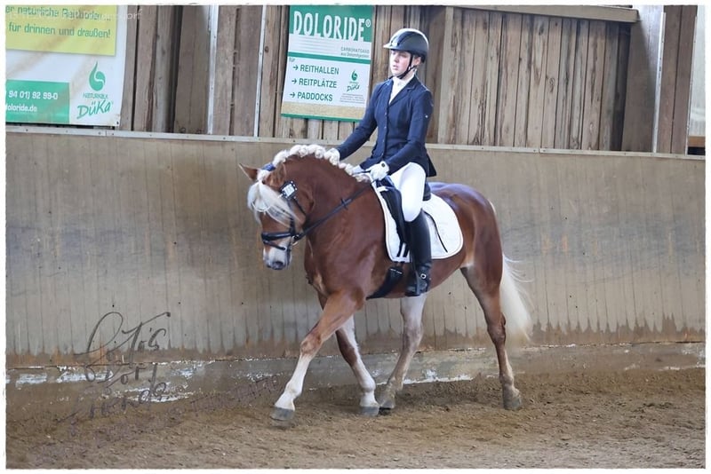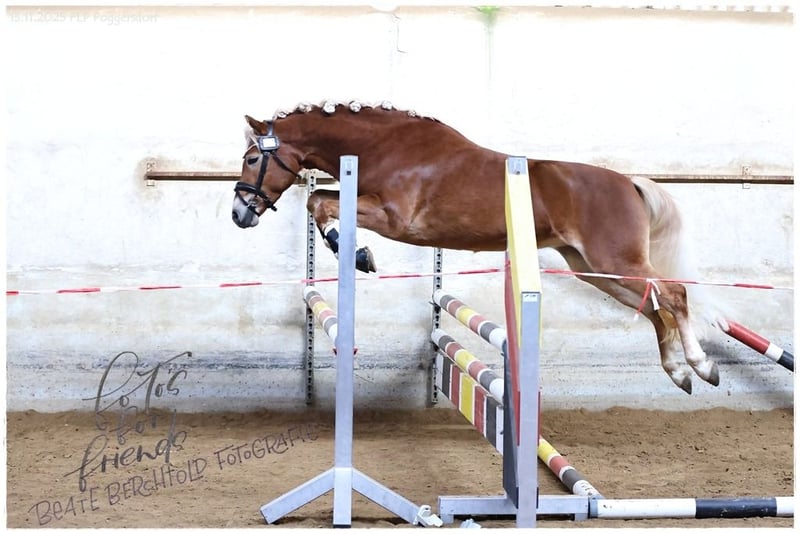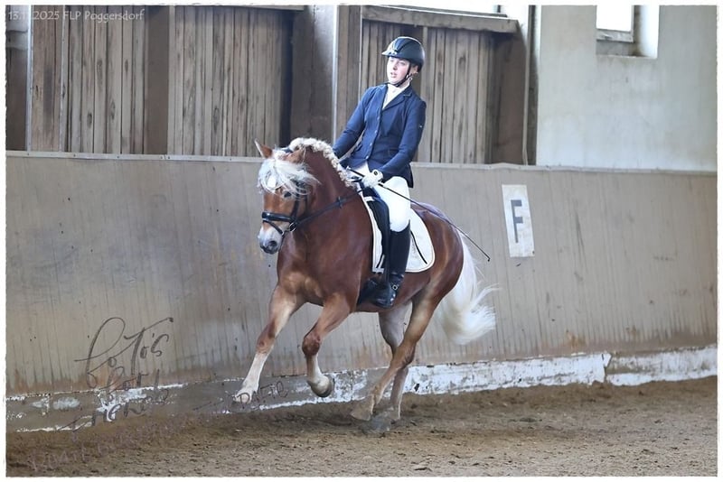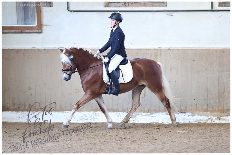 ✨ Mai Andora – leistungsstarke Nachwuchsstute aus Championatslinie ✨ Die 2022 geborene Mai Andora ist eine typvolle, ausdrucksstarke Edelblutstute, die Sportlichkeit, Schönheit und Charakter auf ideale Weise kombiniert. Ihre satte dunkle Fellfarbe, der helle, lange Behang und ihr Stockmaß von ca. 147 cm machen sie zu einem echten Hingucker. Aufgewachsen ist Mai Andora artgerecht im Herdenverband, sie ist schmiede- und verladefromm, regelmäßig geimpft und entwurmt. Auch in fremder Umgebung zeigt sie sich brav und entspannt und geht problemlos alleine ins Gelände. Aufgrund ihres Alters benötigt sie eine weitere Ausbildung, der neue Besitzer sollte über entsprechende Jungpferdeerfahrung verfügen oder fachkundige Unterstützung zur Hand haben. Sie ist PSSM1 n/n frei. 🏅 Leistungsprüfung – Siegerin mit 7,8 Mai Andora gewann ihre Leistungsprüfung mit einer Gesamtnote von 7,8 und überzeugte besonders durch: Rittigkeit Fremdreiter: 8,0 Freispringen: 8,5 Diese Werte stehen für Rittigkeit, Nervenstärke und vielseitige Anlagen. 🌟 Abstammung – reine Leistungsgenetik Vater: Andoro SCH Andoro SCH ist ein hochprämiierter Leistungs- und Prämienhengst, der über Armani Ass aus bewährter Sport- und Zuchtlinie stammt. Er überzeugt mit harmonischem Exterieur, elastischen Bewegungen und hoher Rittigkeit, sowohl unter dem Sattel als auch vor dem Wagen. 🏆 Zuchterfolge Andoro SCH 2018: Fränkisches Fohlenchampionat Cottenbach: Reservesiegerhengstfohlen EH, erfolgreiche Teilnahme Süddeutsches Fohlenchampionat München 2020: Süddeutsch gekört & prämiert (München) 2022: Sieger Hengstleistungsprüfung Stadl-Paura – Gesamtnote 8,56 (Reiten 8,70 / Fahren 8,31) 🏇 Sporterfolge Andoro SCH (Auszug) 2021: Edelbluthaflinger Trophy Moritzburg Finale Platz 3, Reitpferde Platzierungen bis Platz 1 2022–2024: Erfolge in E- bis L-Dressur, Reitpferdeprüfungen, Springpferde A, Geländepferde E, mehrfach Siege & Platzierungen in nationalen Turnieren 2025 (NL): Platz 1 und Platz 2 in M1 📊 FN- & Bayerische Auswertungen 2022: Platz 5 Junghaflinger Deutschlands, Platz 10 Top-Verdiener, Platz 2 der 4-jährigen Bayern 2023: Platz 100 Top-Sporthaflinger DE, Platz 4 der 5-jährigen Bayern 2024: Platz 4 der 6-jährigen Bayern, Platz 6 VS-Haflinger DE, diverse Top-100-Rangierungen 🌱 Nachzucht Andoro SCH Erster Jahrgang: Reservesiegerhengstfohlen EH + Endringfohlen Zweiter Jahrgang: erneut Reservesiegerhengstfohlen EH + Endringfohlen Erste Staatsprämienstute: Emma SCH Erster süddeutsch gekörter Sohn: Angeber SCH ✨ Fazit – Mai Andora: Qualität, Perspektive & Ausstrahlung Mai Andora vereint alles, was ein zukünftiges Sport- oder Zuchtpferd braucht: Leistungsprüfungssiegerin Typvoll & charakterstark Klares, zuverlässiges Interieur Abstammung aus bewährter, leistungsorientierter Linie über Andoro SCH Eine Nachwuchsstute mit für den ambitionierte Reiter und/oder Zucht.