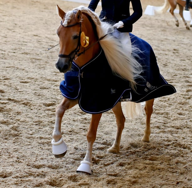 Zum Verkauf steht die außergewöhnliche Edelbluthaflinger Stute „Bandura“, 8 Jahre alt – ein Pferd, das in der Kombination aus Sporterfolg, Charakter, Optik und Zuchtqualität nur äußerst selten zu finden ist. Mit einem Stockmaß von 1,53 m bringt sie die ideale Größe mit, um auch größere Reiter sehr gut abzudecken, bleibt dabei aber absolut unkompliziert und auch von Kindern sicher zu händeln. Ihr ausgeglichener, freundlicher Charakter sowie ihre Menschenbezogenheit machen sie im täglichen Umgang zu einem echten Verlasspferd. Optisch begeistert sie mit ihrer extrem langen, dichten Mähne und ihrem typvollen, ausdrucksstarken Erscheinungsbild. Bandura ist kerngesund, war noch nie krank, regelmäßig geimpft und ostheopathisch behandelt. Sie zeigt sich in allen Bereichen absolut zuverlässig. Sie ist selbstverständlich verlade- und schmiedefromm und überzeugt durch ihre ruhige, kooperative Art – sowohl im täglichen Training als auch im Umgang. Sie konnte auf Turnieren zahlreiche A- und Dressurpferde L Platzierungen erzielen, darunter mehrfach Siege mit konstanten 8er-Noten, was ihre Qualität und Rittigkeit eindrucksvoll unterstreicht. Besonders hervorzuheben sind ihre zwei Siege in den Nürnberger Burkpokal Qualifikationen 2025 für die Thüringer Junioren. Zudem wurde sie auf mehreren Veranstaltungen vorgestellt, wie zum Beispiel die Messe Reiten Jagen Fischen, auch da zeigte die sich immer ruhig und händelbar. Auch im Springen zeigt Bandura viel Vermögen und Übersicht und absolviert einen A*/ A**-Parcour souverän und sicher. Im Gelände präsentiert sie sich absolut geländesicher, nervenstark und motiviert, wobei sie insbesondere an Geländesprüngen große Freude hat. Damit ist sie ein vielseitig einsetzbarer Allrounder für ambitionierte Reiter, die gerne auf Turnieren starten wollen. Züchterisch ist sie ebenfalls hochinteressant: Als Staatsprämienstute und Teilnehmerin der Elitestutenschau bringt sie beste Voraussetzungen in Abstammung, Exterieur und Bewegung mit. Zudem hat sie bereits ein Fohlen zur Welt gebracht, wodurch sie ihre Zuchtqualität auch praktisch unter Beweis gestellt hat und sich sowohl für den weiteren Sporteinsatz als auch für die Zucht gleichermaßen empfiehlt. Unter dem Reiter zeigt sie sich jederzeit leistungsbereit, ehrlich und angenehm zu sitzen.Sie zeigt lediglich eine bekannte, leichte Eigenheit, bei der sie gelegentlich die Zunge einrollt oder kurz herausstreckt, sie jedoch in keiner Weise in Rittigkeit, Anlehnung oder Leistungsfähigkeit beeinflusst – was sich auch deutlich in ihren sportlichen Erfolgen widerspiegelt. Der Verkauf erfolgt ausschließlich aus persönlichen Gründen, da ich ab diesem Sommer ein Studium beginne und dadurch nicht mehr ausreichend Zeit für zwei Pferde aufbringen kann, um diese optimal zu fördern. Die Abgabe fällt entsprechend schwer, daher wird Bandura nur in beste und fördernde Hände abgegeben. Weitere Videos oder Infos über WhatsApp 01738006772