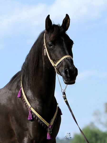 Czysta egipska klacz czystej krwi arabskiej. Rappe bez plakietki, 4 ciemne kopyta. Ubrany z linii Nagl, bardzo oprawione i poprawne. To jest bez zarzutu, jeśli chodzi o blanketing, wolne od problemów w stadzie i doskonały orzech ty. Ma podeszwę ogiera pieszo (również na sprzedaż, urodzony 4/2019), które mogą być sprzedawane w dowolnym momencie. Ze względu na redukcję naszych zapasów, ta Perła jest na sprzedaż.