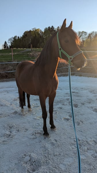 Zum Verkauf steht ein wunderschöner französisch polnischer Araber Wallach, geboren im Jahr 2013. Mit seinem eleganten, braunen Fell und einem Stockmaß von 144 cm ist er ein wahrer Blickfang. Dieser hübsche Wallach sucht seinen Menschen. Wir haben ihn letztes Jahr übernommen, da sein Pferdekumpel verstorben ist. Er ist kein Anfänger Pferd, nichts für Kinder. Er ist ein Rohdiamant und sucht jemanden, der ihm Grundsachen wieder bei bringt. Er hat schon vieles gelernt, aber da geht noch einiges mehr. Er wurde lange nicht mehr geritten, wir sind dabei ihn zu longieren und zweimal saß ich bereits drauf. Er hat sich brav gezeigt, blieb eher stehen als durch zu gehen. Er braucht einfach regelmäßige Arbeit, und das kann ich ihm leider aus gesundheitlichen Gründen nicht geben. Wenn er Vertrauen zu seinem Menschen hat, wird er bestimmt ein super Freizeitpferd. Er steht im Offenstall in einer gemischten Herde Im Preis enthalten ist ein englisch Sattel. geimpft und entwurmt. Bei Interesse oder weiteren Fragen stehe ich Ihnen gerne zur Verfügung.