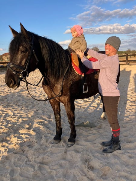 For sale is a 6-year-old dark bay mare of a strong build, approximately 16.0 hh. She is compactly built, well-muscled, and very sturdy—making her an excellent choice for a slightly heavier rider. The mare has been correctly backed and is confident in all three basic gaits. She is well-behaved, calm, and reliable, which makes her suitable for children and less experienced riders under professional supervision. In the field, she is absolutely straightforward, riding well both alone and in a group, without showing any spookiness. She is familiar with other livestock and remains consistently calm. Social and tolerant within her herd, she gets along well with other horses. A pleasant, balanced, and versatile mare, she is ideal as a leisure and family horse, as well as for daily work. Location: Poland, approximately 70 km from Görlitz (about 40 minutes). Transport: possible.