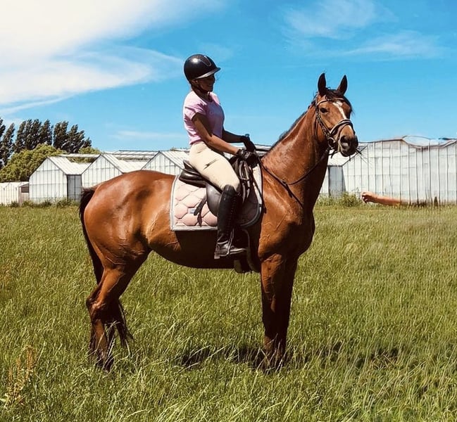 💗 Lexi 💗 Niestety, kochanie i odpuszczanie idą w parze. Z powodu braku czasu szukam dla mojej przepięknej klaczy najlepszego domu. Lexi ma 8 lat i około 1,65 m wzrostu. Szuka przyjaznego domu, gdzie będzie miała dużo czasu na przebywanie na świeżym powietrzu — obecnie spędza 24/7 na zewnątrz, z możliwością wejścia do stajni, kiedy tylko zechce. Lexi zasługuje na cierpliwego, delikatnego, ale stanowczego i pewnego siebie jeźdźca, z którym można komfortowo jeździć – na plaży, w lesie, na padoku. Skoki przez przeszkody nie są jej pasją. Obecnie od kilku miesięcy nie jeździ z powodu braku czasu, więc jazda wymaga odświeżenia. Lexi jest miękka w pysku, a na plaży nie ma problemu z spokojnym galopem na lonży. Jest grzeczna u kowala (co 2 miesiące), u dentysty (co roku) i jest corocznie szczepiona. Nie przeszkadza w codziennym funkcjonowaniu, dlatego szukam dla niej naprawdę najlepszego domu. Chętnie będę utrzymywać kontakt przez pierwszy czas. Nie odpowiadają handlarze ani stajnie.