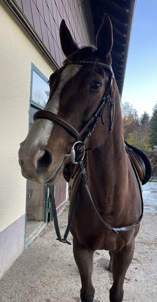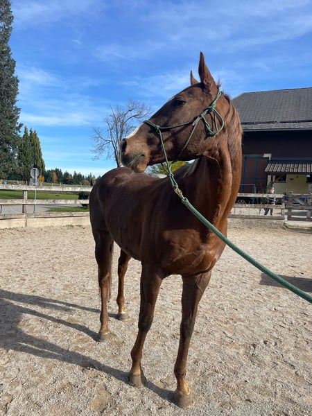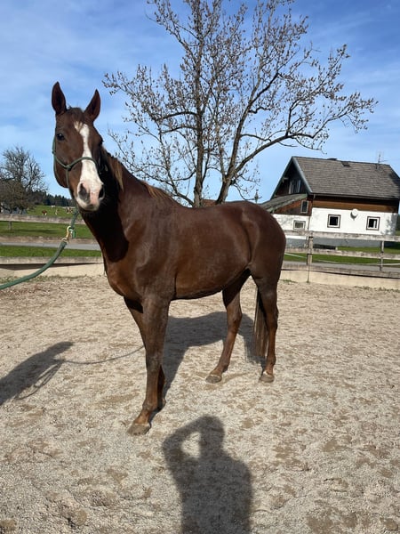 Die Stute "Kisses of Fire" ist eine goßrahmige 11 jährige Vollblutstute. Sie war jetzt einige Jahre in der Zucht (immer unkompliziert und wunderschöne Fohlen) und wird jetzt wieder unter dem Sattel antrainiert. Sie ist entspannt und hat einen guten Charakter, ein liebes Wesen und ist brav im Umgang. Wir arbeiten mit ihr nach den Prinzipien des Horsemanship. Sie kennt Bodenarbeit, Spaziergänge und sie ist Herdenverträglich. Putzen, Führen, Hufe auskratzen, Aufzäumen, Satteln, sowie in den Hänger verladen macht sie alles problemlos. Die Gegenwart von Kindern gefällt ihr. In ihrem Pferdepass sind seit ihrer Geburt sämtliche Impfungen und Untersuchungen lückenlos vorhanden. Sie ist kerngesund und freut sich auf ihre neue Aufgabe als Reitpferd, Familienpferd, vielleicht auch zum Züchten bzw. als Veredlerin in der Warmblutzucht. Wir hatten im Vorjahr einen dreijährigen Sohn von ihr in Beritt - ein echtes Traumpferd Mit der Ausbildung steigt der Preis. Ernsthafte Interessenten dürfen sich gerne melden. Nach Vereinbarung darf unsere "Kissy" gerne besichtigt werden.
