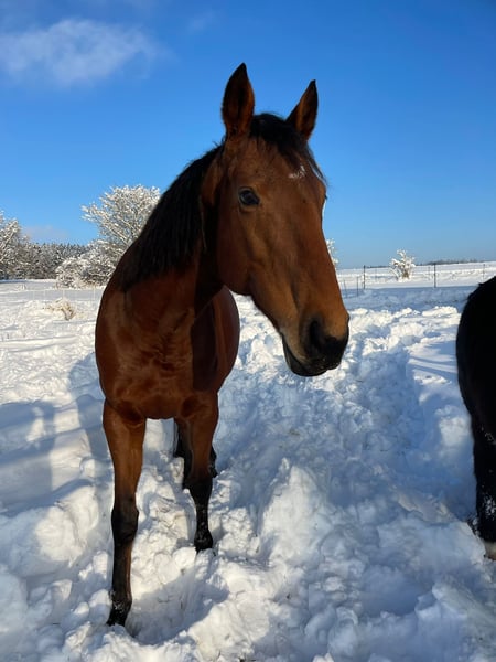 Poszukujemy nowego domu dla naszej pełnej krwi angielskiej klaczy Bailey, urodzonej w 2014 roku, około 1,65 m wzrostu. Bailey to nie tylko koń, to prawdziwa osobowość i absolutny koń serca dla „swojego” człowieka. To, co ją wyróżnia, to jej wspaniały charakter. Jest niezwykle przywiązana do ludzi, zawsze szuka kontaktu i chce się podobać swojemu partnerowi – człowiekowi. Osoby poszukujące głębokiej więzi z koniem, znajdą ją w Bailey. Przy obcych może się nieco „dystansować”, ale gdy ją poznają i polubią, otwiera się na kontakt. Jest też bardzo inteligentna i uwielbia wyzwania umysłowe – praca na lonży, nauka trików czy ćwiczenia na ziemi sprawiają jej ogromną radość, a nowe rzeczy pojmuję często w rekordowym tempie. Na wycieczkach terenowych jest wiernym towarzyszem i chętnie wychodzi na spacer. Gdy jest sama, bywa ostrożna i dostosowuje się do bezpieczeństwa swojego jeźdźca. W towarzystwie innych koni lub pod przewodnictwem nie ma z tym problemu. Bailey to koń dla kogoś, kto nie szuka „sportowego produktu”, lecz przyjaciela na całe życie. Bailey jest u nas koniem do woltyżerki. W kontaktach z dziećmi jest bardzo troskliwa i ostrożna, choć nie można jej nazwać „końcem dziecięcym”. Czasami wychodzi z niej pełna energia pełnej krwi, a jeśli jej opiekun jest niepewny lub zaczyna się niepokoić, Bailey staje się nieco nerwowa. W zeszłym roku, po ciężkiej zapaleniu kopyta, Bailey złamała kość strzałkową, co wyklucza jej dalsze użytkowanie w sportach wyczynowych, w tym w woltyżerce, co było jej głównym zajęciem w naszym klubie. Specyfiką złamania kości strzałkowej jest to, że jest ona otoczona płynem stawowym, co utrudnia jej gojenie. Na szczęście Bailey czuje się dobrze. Nie kuleje, nie bierze leków i może swobodnie wypasać się z innymi końmi. Ze względu na niepełne wygojenie kości, konieczne jest ostrożne obciążanie jej. Od kilku tygodni prowadzimy z nią rehabilitację – 2-3 razy w tygodniu 15-20 minut truchtu na lonży, prace na ziemi i spacery. Raz w tygodniu wykonujemy krótkie przejażdżki w chodzie. Przy takim obciążeniu jest stabilna. Bailey będzie odpowiednia dla osoby, która szuka relacji z żywym stworzeniem, a nie tylko partnera sportowego. Nie powinna być już wykorzystywana do klasycznej jazdy rekreacyjnej, czyli godzinnych treningów ujeżdżenia na placu, intensywnych wycieczek czy skoków – nawet jeśli nie jest kulawa, aby zachować ten stan. Poszukujemy osoby, która postawi na dobro Bailey i będzie chciała się z nią zapoznać oraz zrozumieć jej stan zdrowia. Jesteśmy transparentni w tej kwestii i poważni zainteresowani mogą skontaktować się z naszymi weterynarzami, aby uzyskać pełną dokumentację. Poza ostrożnością w obciążaniu, nie ma innych specjalnych wymagań. Bailey toleruje 24/7 dostęp do wysokiej jakości siana (nawet jeśli nie ćwiczy, może się nieco „nabawić” masy, ale nie ma problemów metabolicznych). Nie wymaga regularnych leków ani wizyt u weterynarza. Podajemy jej wysokiej jakości suplementy, które, jak wierzymy, przyczyniły się do jej postępów. W stadzie jest spokojna, nie wykazuje dominacji ani nie jest szczególnie niska w hierarchii. Oferujemy Bailey w stajence otwartej, w stabilnej grupie. Konieczność przekazania jej nastąpi, gdy wszyscy będą zadowoleni, a nowy opiekun uzna, że jest to właściwe. Możliwa jest umowa przekazania z umową ochronną. Jeśli pochodzisz z okolicy (max. 150 km od Dießen) i zainteresowała Cię Bailey, skontaktuj się z nami! Chętnie dowiemy się więcej o Tobie, dlaczego Bailey Cię interesuje i jak wyobrażasz sobie przyszłość z nią. „Ostateczna cena” czy podobne pytania nie będą odpowiadane. Rozumiemy, że nie chcemy za nią dużych pieniędzy – najważniejsze jest jej dobro i odpowiednie miejsce. Nie negocjujemy cen przed spotkaniem. Jeśli zależy Ci na 200 euro, to chyba nie jest odpowiedni koń dla Ciebie – w porównaniu do kosztów utrzymania, ta kwota nie ma większego znaczenia.