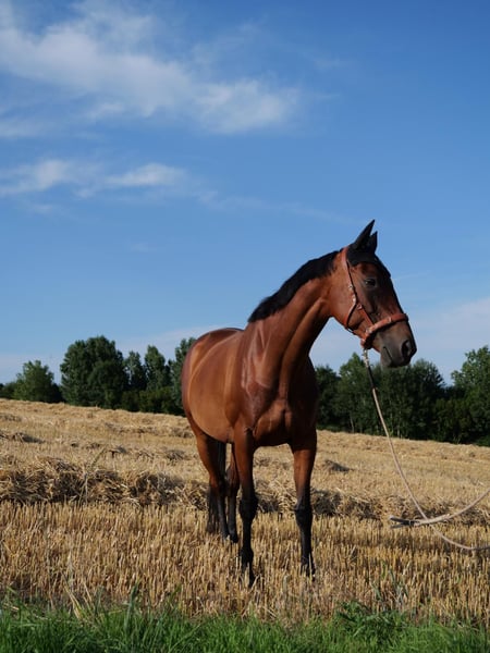 Sulphur is a 13-year-old Thoroughbred mare who truly shines as a leisure and heart horse. She is reliable both alone and in groups when riding in the terrain, eager to move forward, yet always controllable and completely free of bad habits such as bucking or rearing. Character-wise, Sulphur is a very special treasure: very affectionate, extremely cuddly, and attentive. Once she has won you over, she truly does everything for "her" person and approaches riding with great motivation and joy. She forms close bonds and is not a horse that simply "functions," but one with whom you develop a genuine partnership. She is versatile and very solidly trained from the ground, including dual activation, equikinetics, groundwork, and lunging with a double longe line. She loves this work and performs it with focus, finesse, and thoughtfulness. Under saddle, she is well-behaved and reliable, but due to her Thoroughbred nature, she requires a calm, fair, and clear rider’s hand. Sulphur has equine asthma but is completely symptom-free with proper management. She needs dust-free hay and bedding, as well as good air quality. With this care, she remains energetic, happy, and fully suitable as a leisure horse. Her health status is communicated openly and honestly – her well-being is my top priority. I wish for Sulphur a loving home with someone who appreciates her sensitivity, her joy in work, and her big heart, and who can provide her with a horse-friendly, healthy environment.