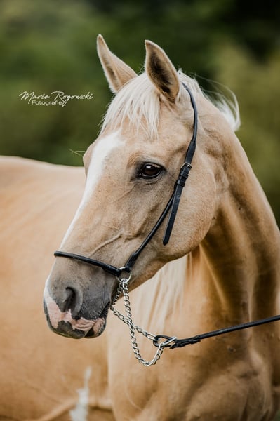Klacz pełnej krwi angielskiej DANCE IN GOLD xx po RFF THE ALCHEMIST xx x Racey Remarque xx (USA) z własnej hodowli, pojedynczo rozjaśniona (palomino) ze specjalnymi oznaczeniami (DW). Ojciec był pierwszym (podwójnie) rozjaśnionym importowanym ogierem pełnej krwi z uznaniem Trakehnera w Niemczech. Niemieckie i francuskie papiery. Miała cztery bardzo dobre źrebaki, ostatnio klaczkę pełnej krwi Cremello w 2022 roku. Żyje 24/7/365 na zewnątrz solidnie w stadzie na rozległych terenach, przyzwyczajona również do transportu długodystansowego. Barehoofed, odrobaczony, zaszczepiony - odnowiony na życzenie - możliwe jest również leczenie stomatologiczne i osteopatia. Może być pokryty wiosną na życzenie, wybór 10 własnych ogierów pełnej krwi, ciepłokrwistych i półkrwi arabskiej, miejsce do wyżywienia bardzo korzystne. Sprzedaż tylko z powodu likwidacji stada. Klacz jest doskonałym zwierzęciem. Sprzedaż prywatna po zapoznaniu się, zakwaterowanie zostanie zapewnione bezpłatnie. Cena ... symboliczne jedno euro NIE jest ceną sprzedaży. Cena sprzedaży zależy od kupującego i innych ustaleń umownych. Tutaj kupujący może zdobyć punkty na swoją (lub ostatecznie konia) korzyść poprzez dobrą hodowlę i / lub miejsce do życia (bez przekazywania). Wszystkie zwierzęta są dostępne tylko na osobistej prezentacji.