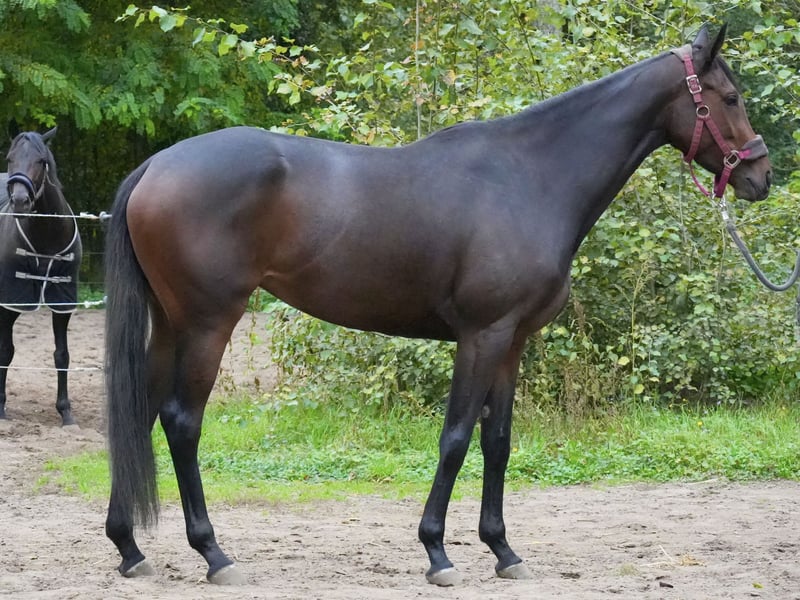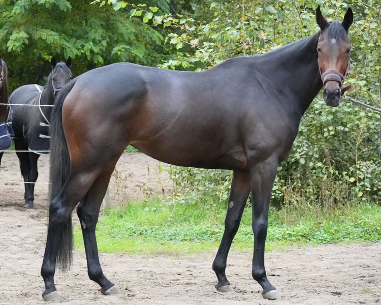 For sale is a brown mare, born in 2022, with a height of 1.65 m. She is sired by Lord of England out of Swingdream, a daughter of Soldier Hollow. The mare is offered as a future broodmare. She had a minor tendon injury in her front right leg, which is why no athletic use is intended. She is regularly vaccinated and is pleasant to handle. Further information or current photos/videos can be provided upon request. 📍 Location: Neuenhagen near Berlin 15366, Kiefernallee 23, Rennstall Sarka Schütz 🧬 Pedigree: Lord of England x Swingdream (Smaranda x Soldier Hollow) 📏 Height: 1.65 m 💉 Health: vaccinated, minor tendon injury in front right leg