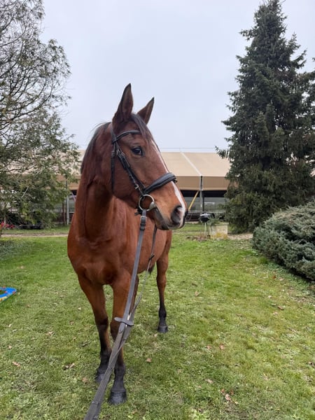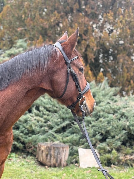 Hübsche Stute Geboren 2020 ca. 1,65 m Sehr liebenswert Angenehm im Dressur- und Springreiten Verlässlich im Gelände: läuft allein oder in der Gruppe Schöne Stute mit Entwicklungspotenzial