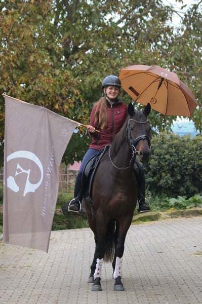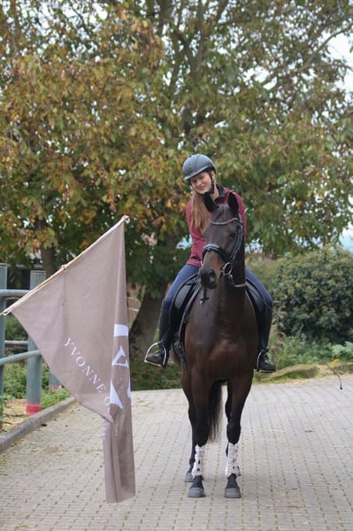 Nussini is a beautiful approximately 15.3 hh, six-and-a-half-year-old English Thoroughbred mare with an exceptionally noble, expressive head and elegant conformation. She has been consistently worked in a versatile manner and demonstrates a willing, sensitive, and motivated nature. Nussini is well-schooled and responds delicately to aids. She masters classical riding school movements such as shoulder-in, travers, and renvers. Additionally, she is familiar with classical groundwork, lunging (both ridden and traditional), and shows early signs of liberty work. In the terrain, Nussini shows her best qualities: she is confident whether riding alone or in a group, loves long rides and trekking adventures. Traffic, tractors, or bicycles are no problem for her! She has successfully completed desensitization training, handles traffic safely, and thoroughly enjoys being outdoors. Her greatest happiness is when it’s time to go out riding: “Let’s go, let’s go, let’s go!” In character, Nussini is a very special lady—loving, sensitive, honest, but also with a healthy dose of personality. She is a loyal and reliable partner; once she trusts someone, she is very loyal. However, she needs an experienced horse person who understands proper, humane handling and can provide clear leadership. Nussini appreciates consistency and clarity, combined with gentle firmness when needed. When given this, she blossoms and will stand by her person through thick and thin. Nussini is accustomed to dogs, cats, and children, and interacts with them wonderfully. However, she would not be suitable as a pure children’s pony. She is farrier- and loading-trainable, knows the lunging aid, is socially confident, and is used to both box and pasture turnout as well as open stall housing. For Nussini, we are looking for a loving, experienced home where she can be physically and mentally stimulated, and where her passion for trail riding can be fully enjoyed. Priority goes to a suitable home over price! A home with heart, understanding, experience, and time is our top priority.