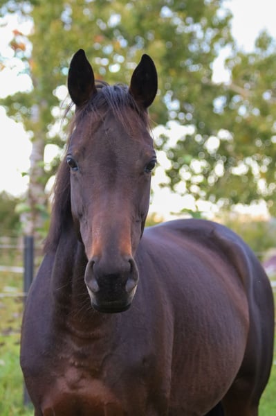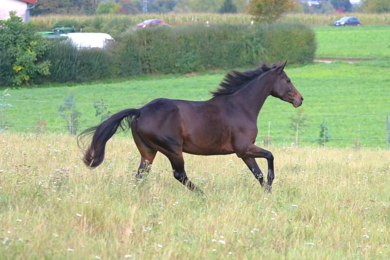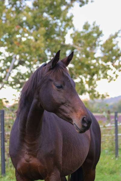 Nussini ist eine ca. 153cm große, sechseinhalb jährige, wunderschöne englische Vollblutstute mit außergewöhnlich edlem,ausdrucksvollem Köpfchen und einem schönen Gebäude. Sie wurde stets vielseitig gearbeitet und zeigt sich dabei gelehrig, schön sensibel und motiviert. Nussini ist gut grundausgebildet und steht fein an den Hilfen. Sie beherrscht die klassischen Rittigkeitslektionen wie Schulterherein, Travers und Renvers. Außerdem kennt sie die klassische Handarbeit, die gefahrene und klassische Doppellonge sowie Ansätze der Freiarbeit. Im Gelände zeigt sich Nussini von ihrer besten Seite: Sie geht alleine oder in der Gruppe ins Gelände, liebt lange Ausritte und Wanderritte. Ob Straßenverkehr, Traktoren oder Fahrräder. für Nussini alles kein Problem! Sie hat das Gelassenheitstraining mit Bravour absolviert, geht sicher durch den Verkehr und genießt das Draußensein in vollen Zügen. Am glücklichsten ist sie, wenn es heißt: „Raus, raus, raus!“ Charakterlich ist Nussini eine ganz besondere Dame, liebenswert, sensibel und ehrlich, aber auch mit einer gesunden Portion Persönlichkeit. Sie ist eine treue und verlässliche Partnerin, wenn sie Vertrauen gefasst hat, braucht jedoch einen Menschen, der pferdeerfahren ist und einen fach- und tiergerechten Umgang beherrscht. Nussini wünscht sich jemanden, der Führung leben kann, ihr klare Strukturen gibt und auch einmal liebevoll, aber bestimmt Nein sagen kann. Sie schätzt Klarheit und Konsequenz genauso wie Feingefühl, dann blüht sie auf und geht mit ihrem Menschen durch dick und dünn. Nussini ist an Hunde, Katzen und Kinder gewöhnt und geht mit ihnen zauberhaft um, wäre aber nicht als reines Kinderpony geeignet. Sie ist schmied- und verladefromm, kennt das Laufband, ist sozialverträglich und sowohl Box mit Weidegang als auch Offenstallhaltung gewohnt. Für Nussini wünschen wir uns ein liebevolles, pferdeerfahrenes Zuhause, in dem sie körperlich und geistig gefördert wird und wo ihre Leidenschaft fürs Gelände ausgelebt werden darf. Platz vor Preis! Ein Zuhause mit Herz, Verstand, Erfahrung und Zeit steht bei uns an erster Stelle.