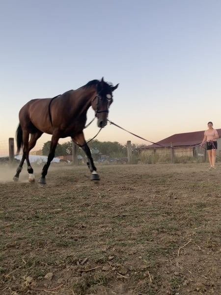 Singella ist eine Stute mit großem Herz, sehr liebenswert und intelligent. Sie wurde aus Ungarn gekauft (gezüchtet in Deutschland). In Ungarn sprang sie mit Reiter bis zu 115 cm, beim Freejump erreichte sie die maximale Höhe von 130 cm. Sie ist regelmäßig in allen vier Hufen beschlagen, die Zähne wurden zuletzt am 02.04.2025 behandelt. Die Stute besitzt ein hervorragendes Potenzial für Springen oder Dressur. Sie hat äußerst komfortable Bewegungen und wurde bereits von Anfängern und kleinen Kindern geritten. Ihre Eltern sind sehr erfolgreich im Rennsport.