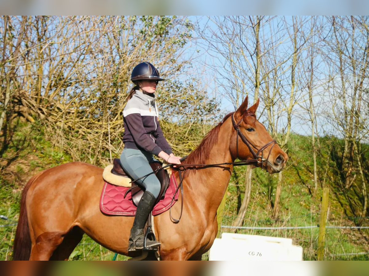 English Thoroughbred mare, born in 2020 This elegant chestnut mare, standing approximately 16.1 hh, is a typical example of the English Thoroughbred, combining finesse, strength, and a lively temperament. Her excellent pedigree and natural qualities make her an ideal candidate for competition or breeding. She has a harmonious conformation, with a good frame and a solid topline. Her movement is fluid and balanced, indicating good potential under saddle. Well-handled, she is accustomed to serious training and lives in both box and paddock. Her stable temperament and willing attitude make her a reliable and enjoyable ride, suitable for an experienced rider or an amateur looking to improve. She has been regularly checked by a veterinarian and is in good overall health. An opportunity not to be missed for those seeking a quality mare ready to invest in an ambitious equestrian project.