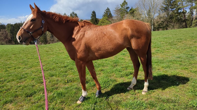 Navaja- 7jährige Vollblutstute abzugeben (Dawn Approach – Big Shuffle), 162cm groß, super freundlich und rittig. Sie stand nun 1 Jahr barhuf auf Koppel wegen Hufgelenksentzündung im Nov. 2024. Röntgen und Gelenkflüssigkeit ist in Ordnung, noch leicht lahm auf hartem Boden. Mit gutem Beschlag wieder anschiebbar oder aber für die Zucht. Extrem netter Charakter, anhänglich und verständig, gut im Freizeitbereich geritten, kennt Haltung im Freizeitstall und momentan Dauerkoppel ohne Probleme. Schmiede - und verladefromm, im Umgang super unkompliziert und gut erzogen. Hübsches, kräftiges Pferd, rittig und willig in allen Lebenslagen. 1500€ Tel.: 0151 – 17285960