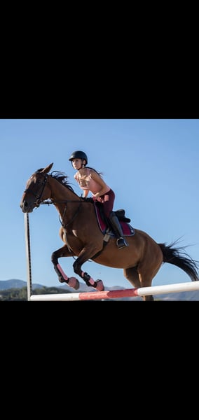 Yegua pura raza inglesa en venta. Saltaba hasta 130cm saltos sueltos, y 1m recorrido. actualmente lleva varios meses sin saltar, entrenando en doma clásica, nivel básico de doma clásica. Muy buen carácter, tranquila, facil a manejar, cuida mucho su jinete. Gano varios competiciones de salto (hasta 1 metro).