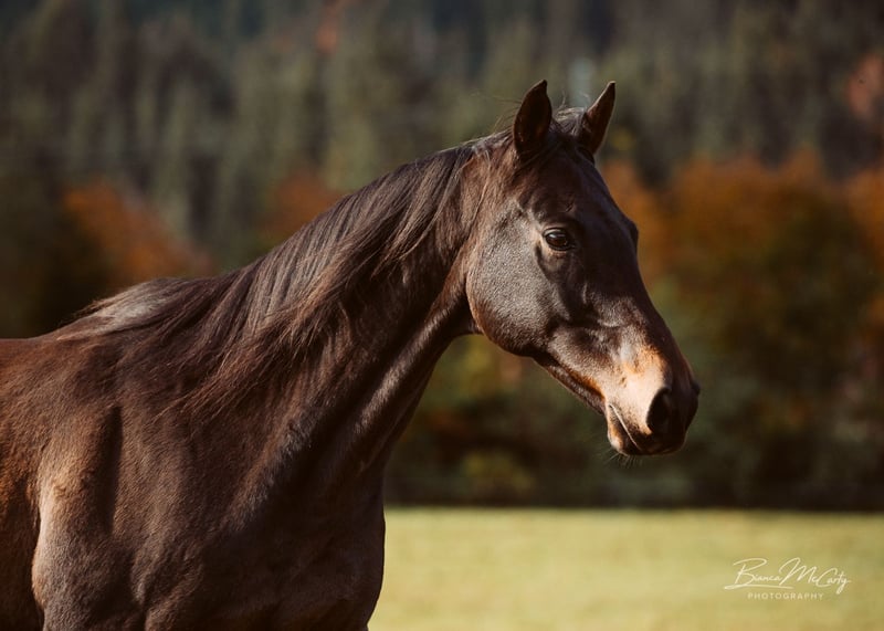 Famous raced in the flat racing sport until the age of 7. He was fortunate to be in a very good training stable where decisions are made for each horse individually. When he retired from sports, our paths crossed. For the last few years, he has enjoyed his life in a mixed herd in a paddock in Tyrol. In the herd, he is very social. Due to a lack of time, he has only been ridden sporadically. He masters all gaits, as well as all lateral movements in walk and trot. We have also started working on piaffe. Famous has a pleasant energy when riding and is never headstrong. A meeting and trial ride can be arranged at any time upon request. Don’t hesitate to get to know Famous; if everything fits, the price is absolutely negotiable.