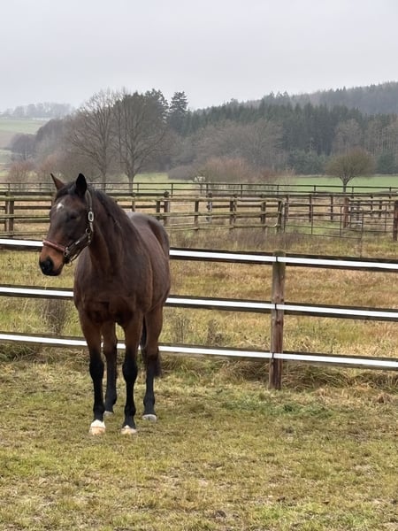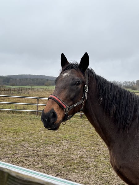 Carpathian is a 12-year-old former racehorse. We acquired him from the previous owners of our farm. In recent years, he has mainly been kept in the pasture or stabled during the winter with daily turnout. However, since we now need his space for our own horses, we are looking for a new home for him. Trial riding is not possible, as he is not in training. With us, he was very compatible with other horses, even in different groupings. He is vaccinated.