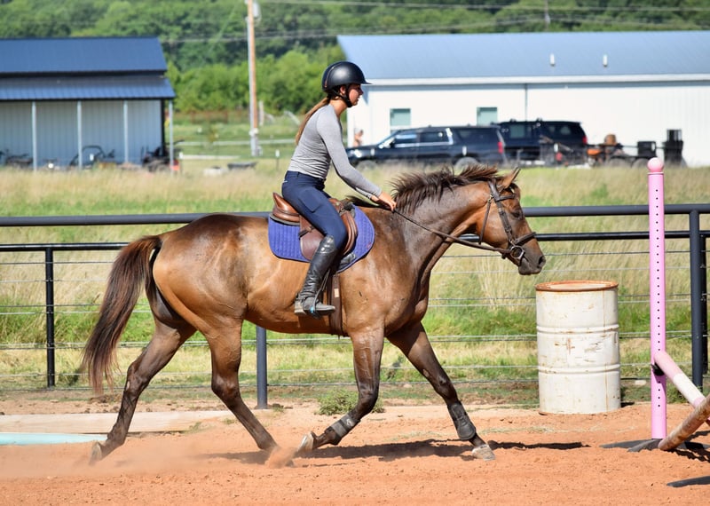 🍂 𝓐𝓾𝓽𝓾𝓶𝓷 𝑨𝑳𝑳 𝑺𝑻𝑨𝑹 𝑳𝑰𝑵𝑬𝑼𝑷 🍂 Happening now thru MONDAY | OCTOBER 6th - Available EXCLUSIVELY on HorseBid's website! For more details and to register visit: www.Horsebid.com CONSIGNOR CONTACT: JB Horsemanship LLC 970-549-6172 LOCATION: McCurtain, OK BREED: Thoroughbred REGISTERED: Yes REGISTERED NAME: Sazon COLOR: Bay HEIGHT: 16.1 AGE: 5 GENDER: Gelding We are proud to introduce “Sazon” aka Bravo, currently in training and recently consigned with JB Horsemanship LLC. He is a 2020 bay Thoroughbred gelding, standing at 16.1 hands, registered with the Jockey Club. This boy is oftentimes mistaken for a Warmblood Cross at horse shows! His sweet temperament and extreme willingness is perfect for any adult amateur or young/jr rider. He is just a rockstar, has an old soul, is forward thinking, brave and easy to ride and handle in every way. Talented jumper and eventer guaranteed to succeed! He is a great traveler that settles easily into new places. Bravo is best suited for a rider looking to start their eventing career, or for an individual seeking a talented partner to progress through the levels. He demonstrates bravery and forgiveness, with lots of scope and try, making him a prime candidate for amateur or young riders to develop their skills. Bravo is not spooky and is confident going into new places and over never-seen-before jumps, helping to build confidence in young riders. Not interested in competing or jumping? He would also make someone a lovely trail or flatwork partner. He is a steady ride that excels in the dressage arena and out on the trail alone or with a group. Bravo has been pastured with others and stabled alone with no issues. No kick, bite, buck, bolt, etc. Bravo is healthy and sound with no vices. No maintenance history. Clips, bathes, ties, hauls with ease. Front shoes, barefoot behind. Current negative coggins and ready to find his next partner! Bravo will remain in training with JB Horsemanship and showing with teen event rider until sold. Located in McCurtain, OK. Feel free to reach out with any questions or to schedule a time to come try him at 970-549-6172!