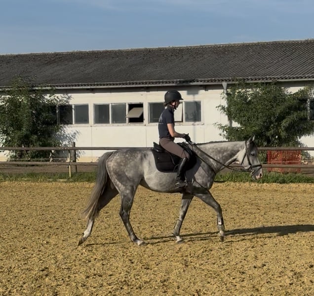 Thoroughbred gelding, 7 years old, height 159 cm "Skipjack" ran his last race in August 2025 and leaves the racing world injury-free and motivated for a second career. He is sensitive and intelligent, and he shows great potential in the first sessions in the riding arena. He impresses with very good basic gaits and body awareness but needs an experienced and empathetic rider. Both jumping and dressage are possible. Please note: "Skippi" is and will remain a Thoroughbred, and his current training level is more akin to that of a remount. Racehorses need to learn the aids for riding horses! Only to a sensitive rider with experience in young horse training and/or with ex-racehorses who is interested in a project with potential.