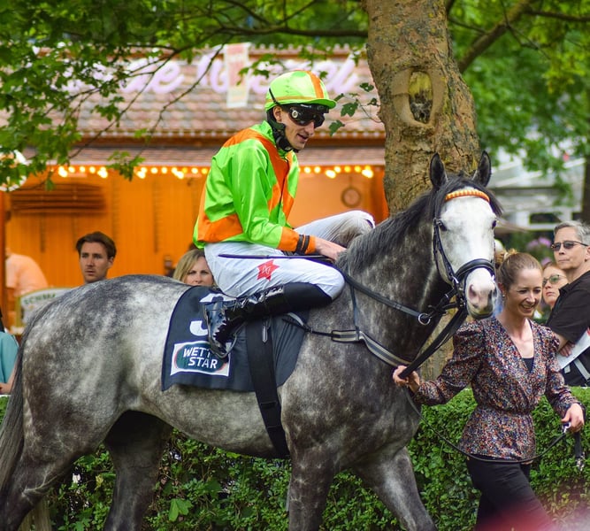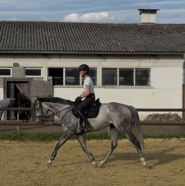 Koniuszy pełnej krwi, 7 lat, wzrost 159 cm „Skipjack“ zakończył swoje ostatnie wyścigi w sierpniu 2025 roku i opuszcza sport wyścigowy bez kontuzji, zmotywowany do drugiej kariery. Jest wrażliwy i inteligentny, a już w pierwszych zajęciach na placu jeździeckim prezentuje się niezwykle dobrze. Zachwyca bardzo dobrymi podstawowymi chodami i wyczuciem ciała, ale potrzebuje doświadczonego i wrażliwego jeźdźca. Skoki i ujeżdżenie są obie możliwe. Proszę zwrócić uwagę: „Skippi” jest i pozostanie koniem pełnej krwi, a jego obecny poziom wyszkolenia odpowiada raczej młodemu koniowi. Konie wyścigowe muszą najpierw nauczyć się pomocy jeździeckich! Tylko dla wrażliwych jeźdźców z doświadczeniem w szkoleniu młodych koni i/lub z byłymi wyścigowcami, którzy mają ochotę na projekt z potencjałem.