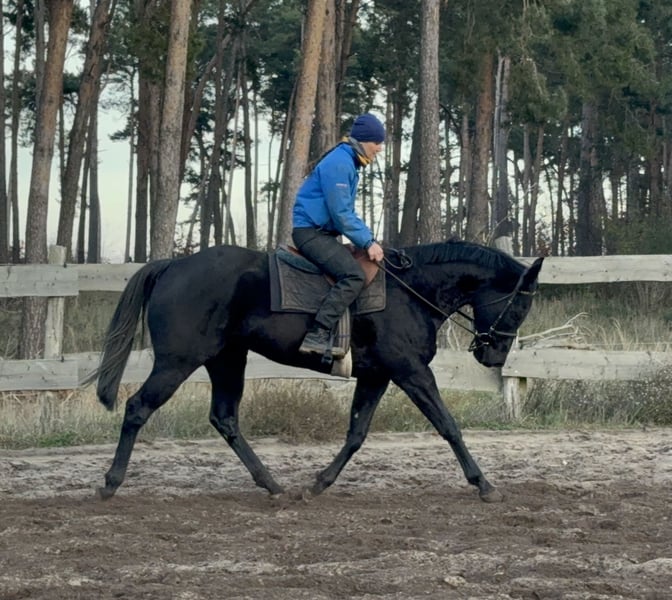 Power ist ein bildschöner Rappwallach mit einem liebevollen Charakter. Power zeigt sich sehr gelehrig bei der Arbeit auf dem Dressurplatz. Er geht problemlos alleine ins Gelände und steht in einer großen gemischten Herde mit Stuten und Wallachen. Er zeigt sich sehr freundlich mit andere pferde und dem Mensch gegenüber sowieso. Er lässt sich mit und ohne Sattel reiten und ist für jeden Spaß zu haben. Leichtfuttriger Wallach der durchaus auch mit Offenstall Haltung zurecht kommen würde. Keine gesundheitlichen Einschränkungen oder Unarten. Gerne bei Interesse per Anruf oder WhatsApp melden 01633276779