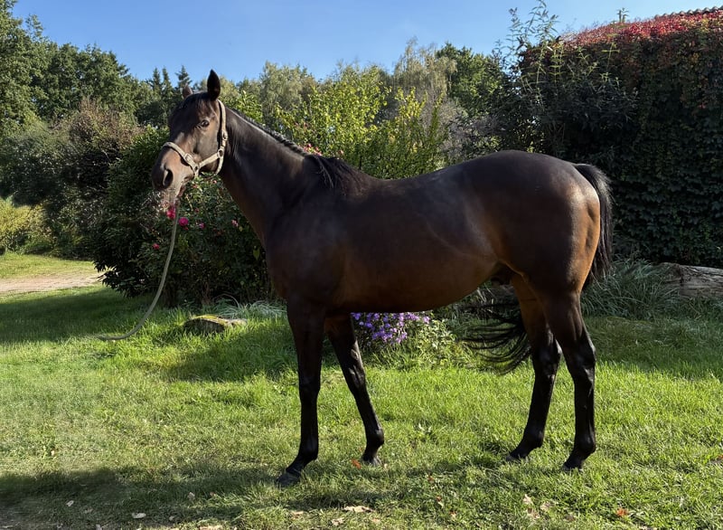 Flying Rocket is a healthy, robust VB gelding who is looking for "his" person for a second career as a leisure horse. He is currently out in the pasture with a friend, stabled at night, and goes to the walker daily. Under saddle, he is always in good spirits and full of energy, not a beginner's horse ;-)
